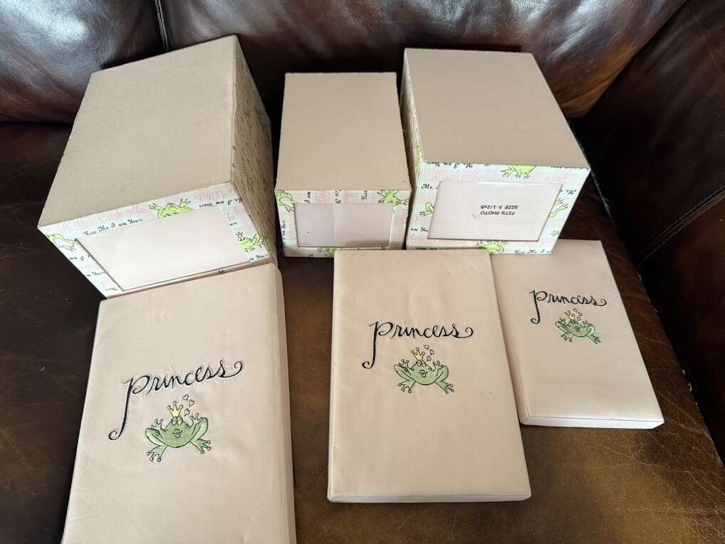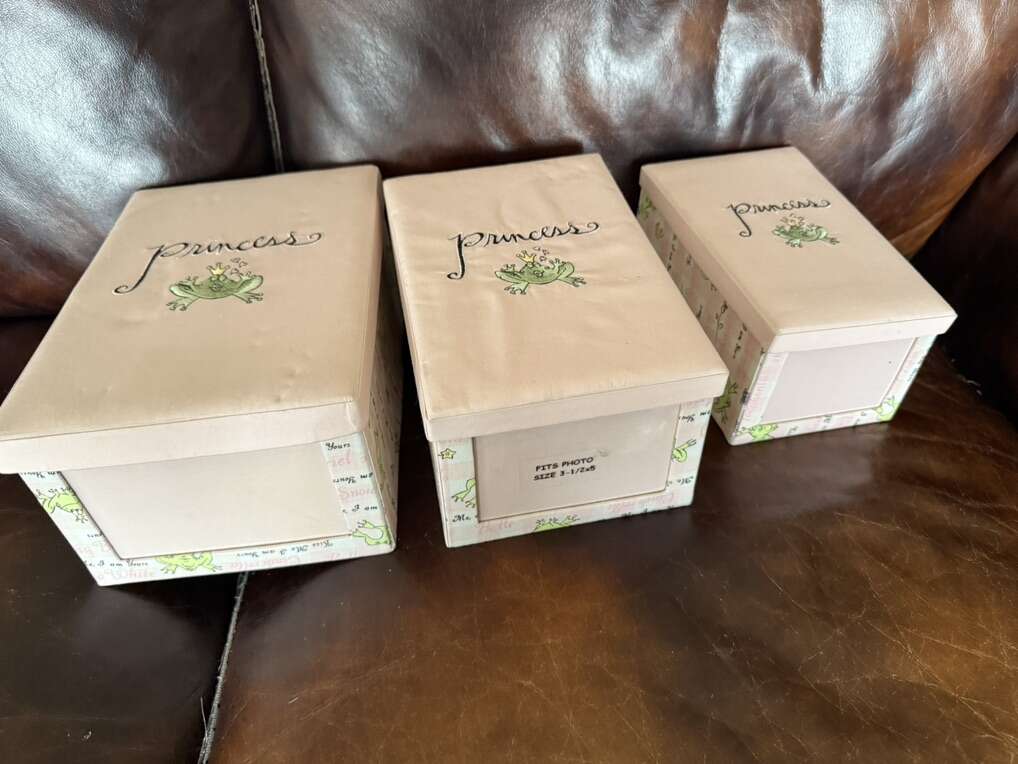 Vintage Disney Princess frog photo boxes set of 3 4X6 3 1/2 X5 & 3 X 4 1/2 they do have marks as shown in pictures