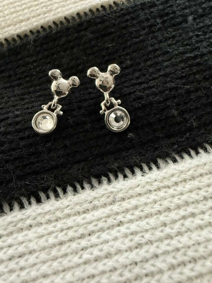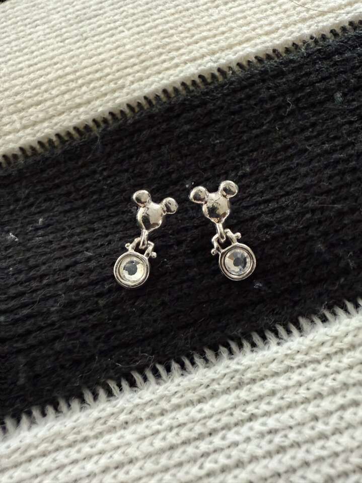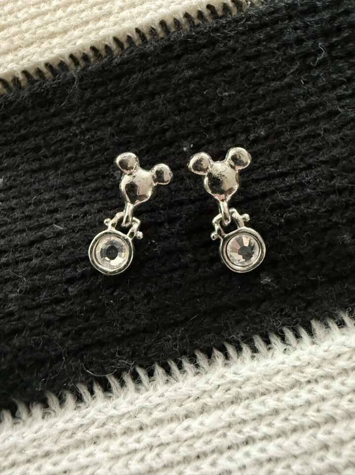 Vintage Disney silver costume jewelry Mickey head earrings about 1/2”