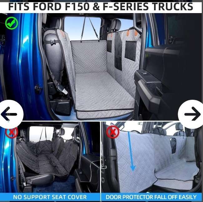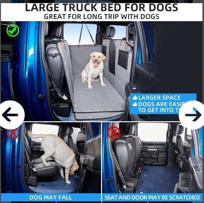 VenmoDogs are easier to get into truck With the seats in the back of your truck lifted up and dog car seat cover for back seat installed, it's much easier for your dog to get in and out of truck while still protecting the seats and doors. Larger space for dogs With the seat covers for trucks, the entire floor of the back of truck becomes a resting space for the dog, perfect for people who have multiple dogs or have older dogs! Preventing Dog Falls The dog stays on truck floor like he's lying on the living room floor.After installing dog hammock for truck,no more worrying about your dog falling out of the back seat! Waterproof and scratch-resistant Back seat extender for dogs made of high-quality waterproof and scratch-resistant material. Fits most truck The dimensions of truck floor cover are 55.9*26.7inches.ABE back seat pet cover for dogs is specially designed for full size trucks.The dog bed for truck is suitable for F150 /RAM 1500/Silverado/GMC/Tundra...