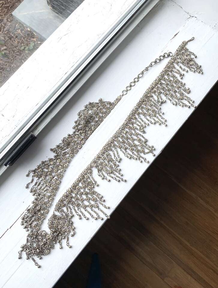 VenmoSilver Boho Belt Between 43-44 inches in length with the adjuster, picture included with measuring tape. Cash or Venmo. Will hold with Venmo payment.