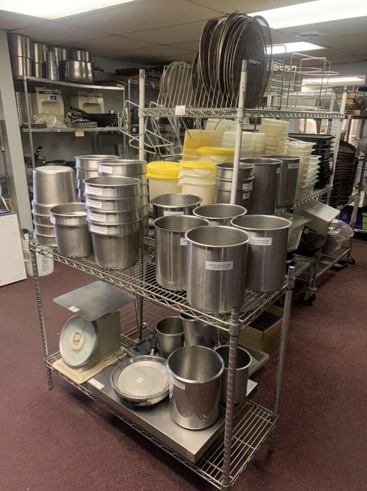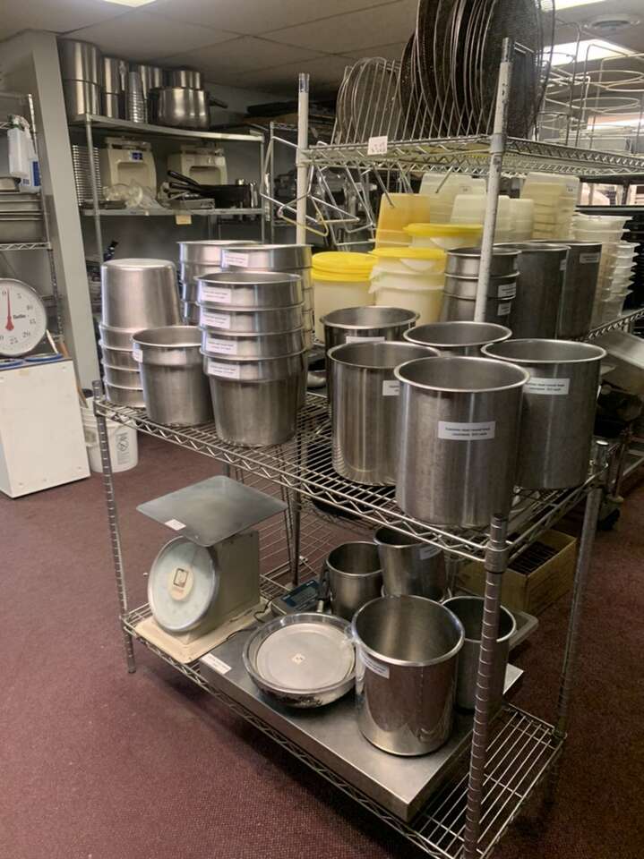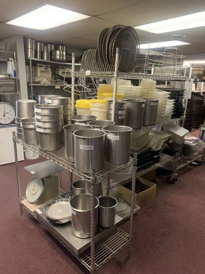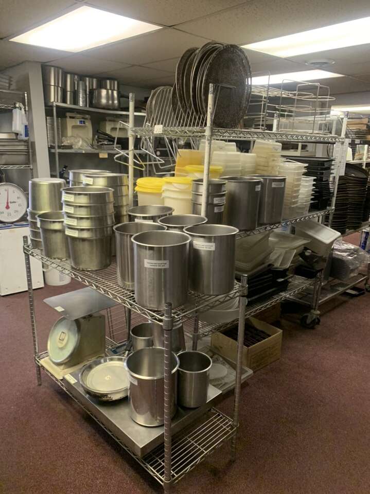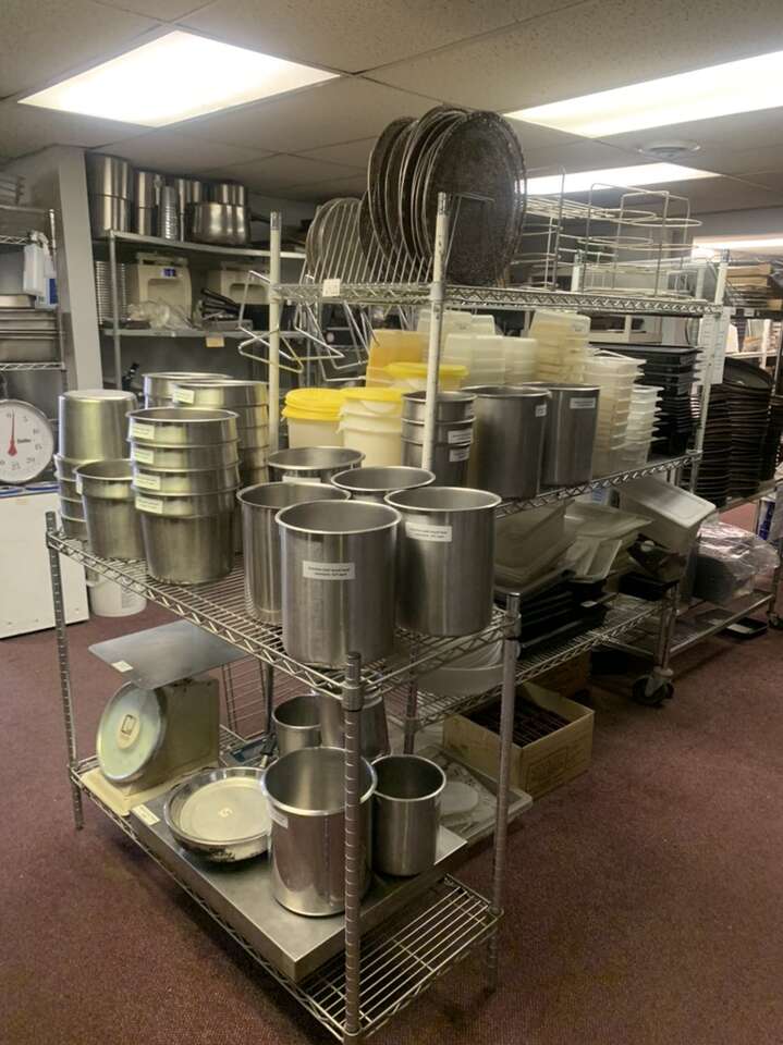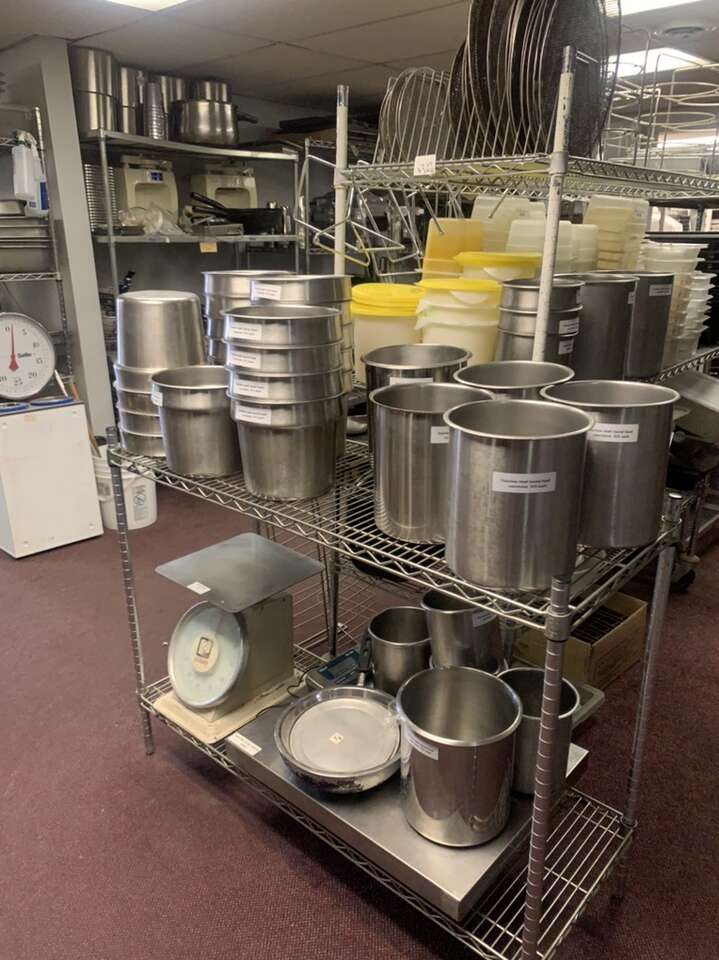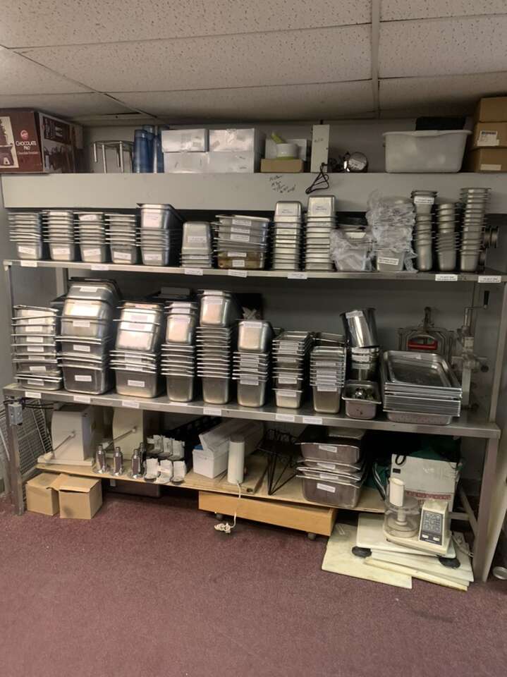 Used stainless steel all size pans , food container in stocks . More than 100 in stock Great for sandwich tables , pizza prep tables Steam tables and holding hot and Cold foods . starting price frome $5 and up