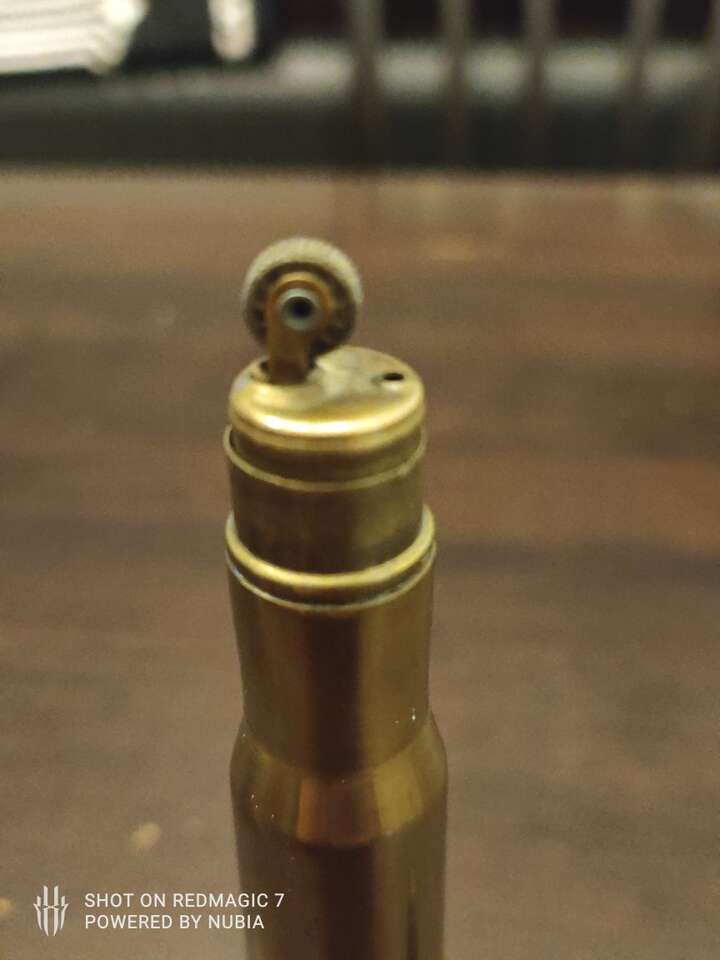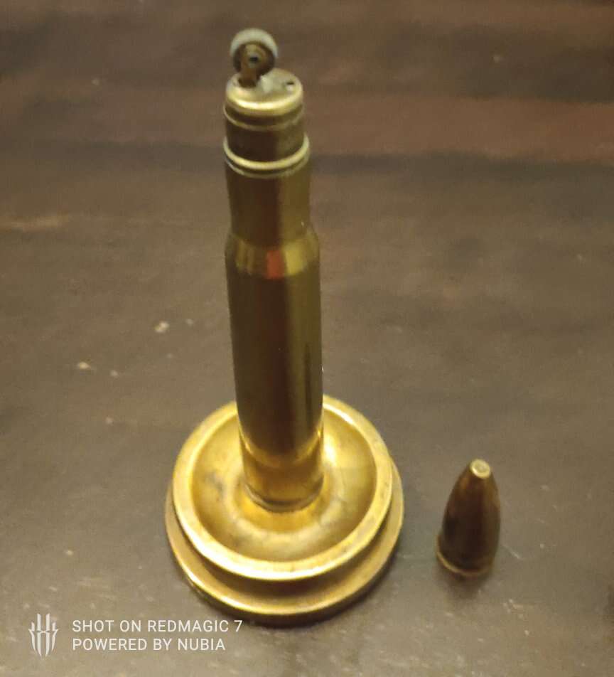 Original WWII Trench Art Lighter Made of brass Shell with Stand 1943