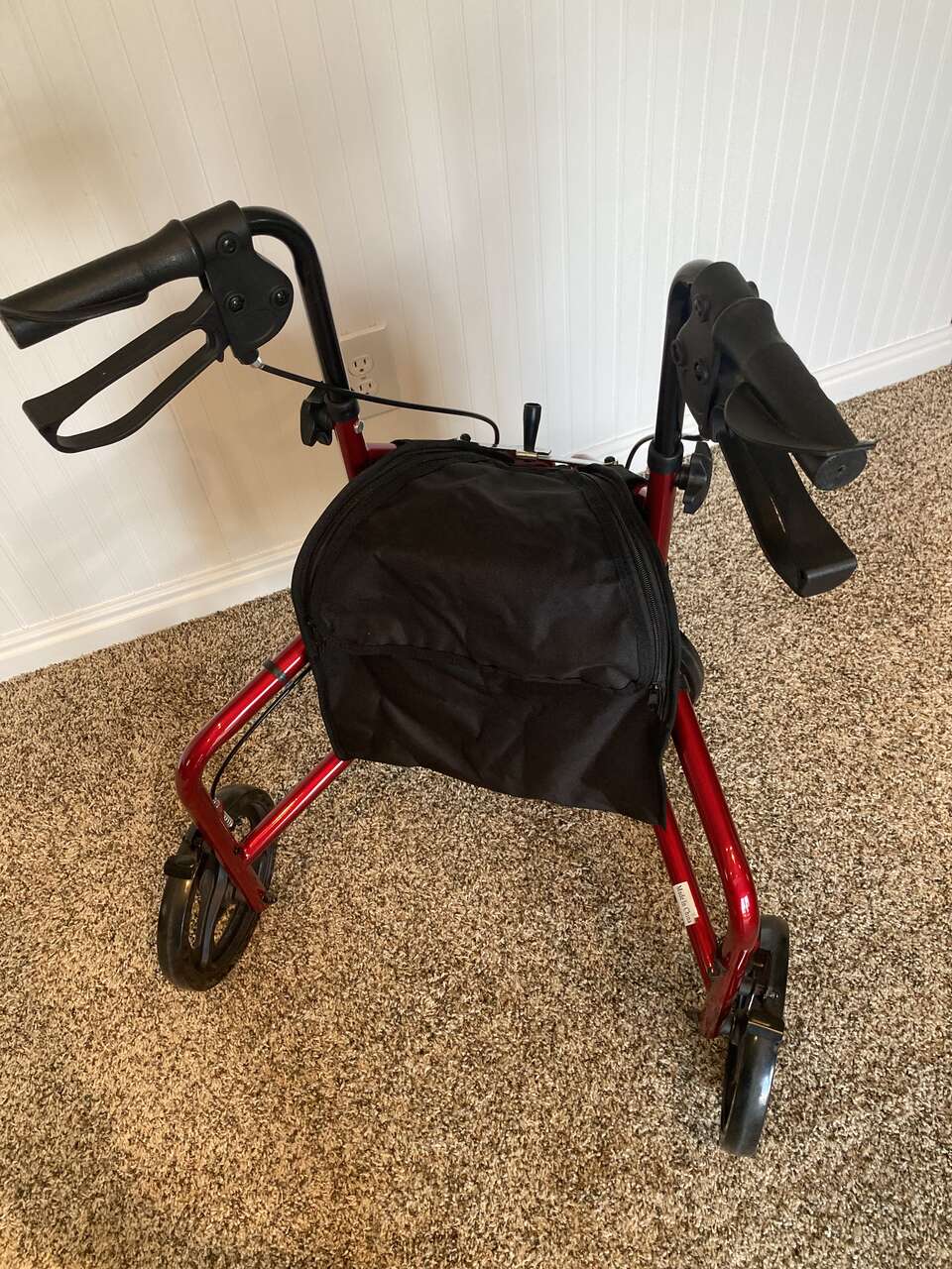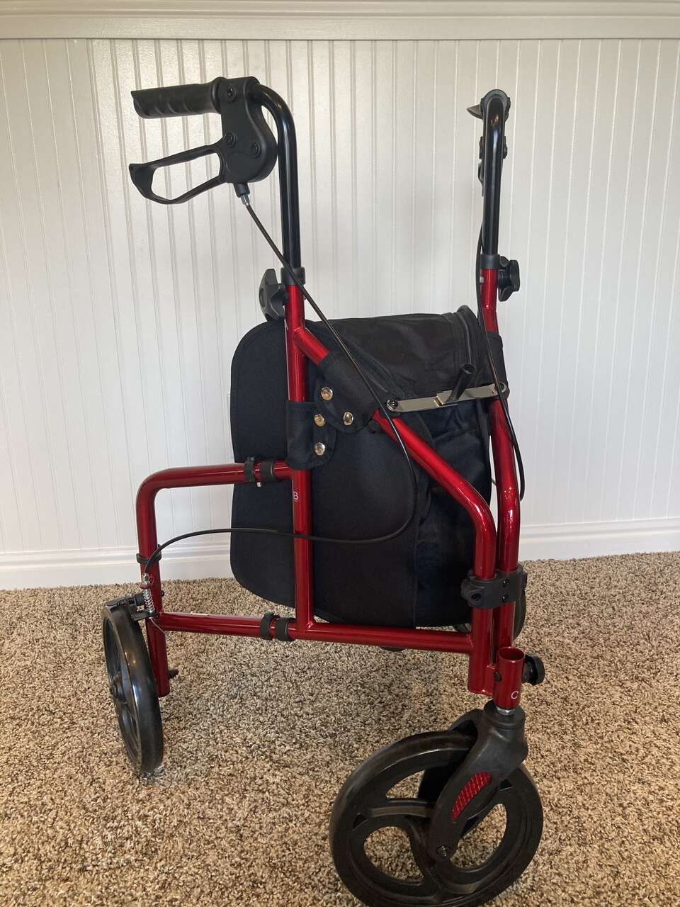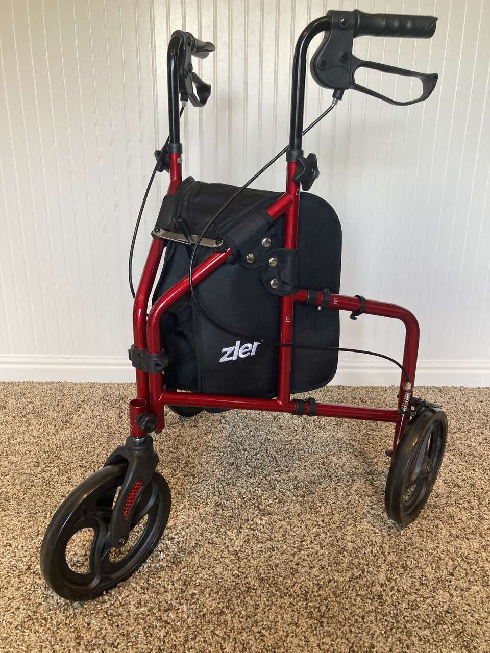 This 3 wheel Rollator is a wonderful mobility aid and will support up to 250 lbs. It has hand breaks that are lockable. very gently used, in new condition! Stands 36 inches high