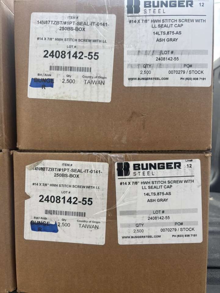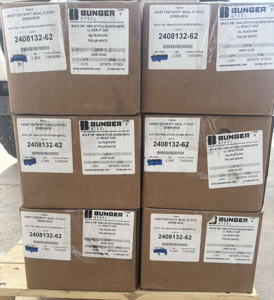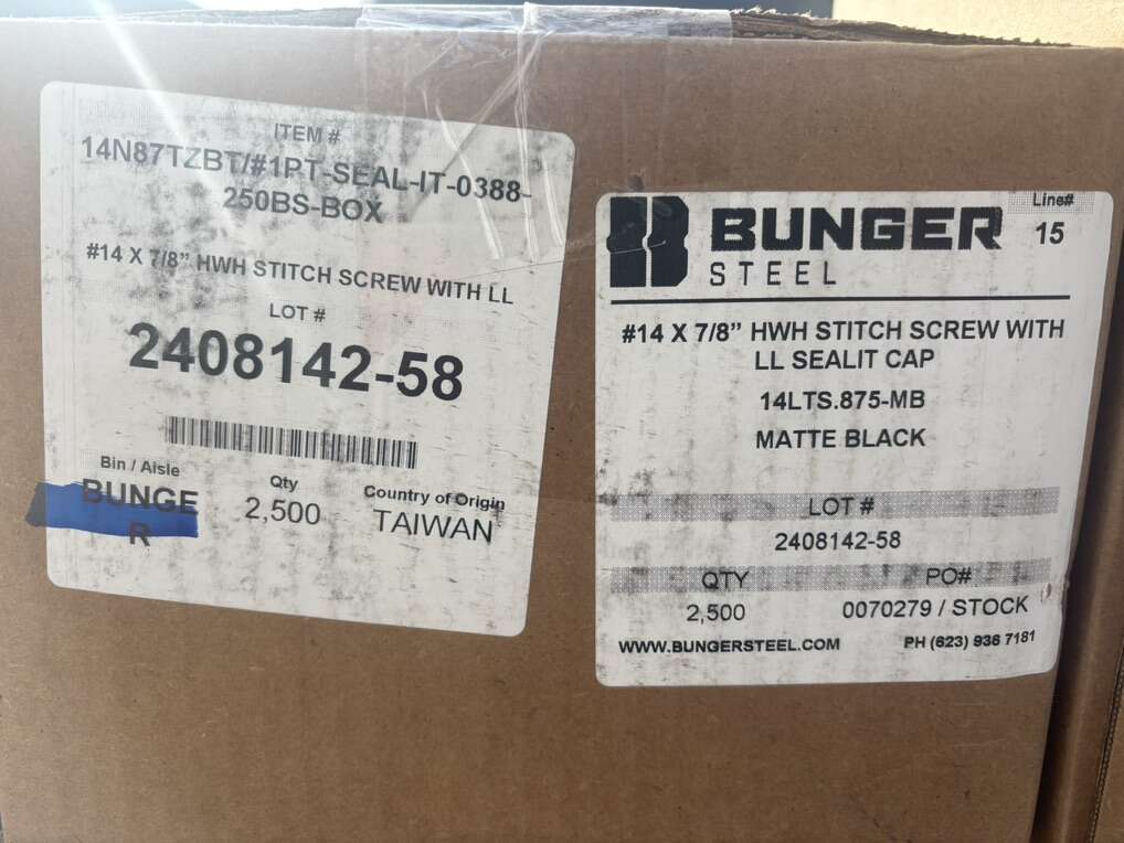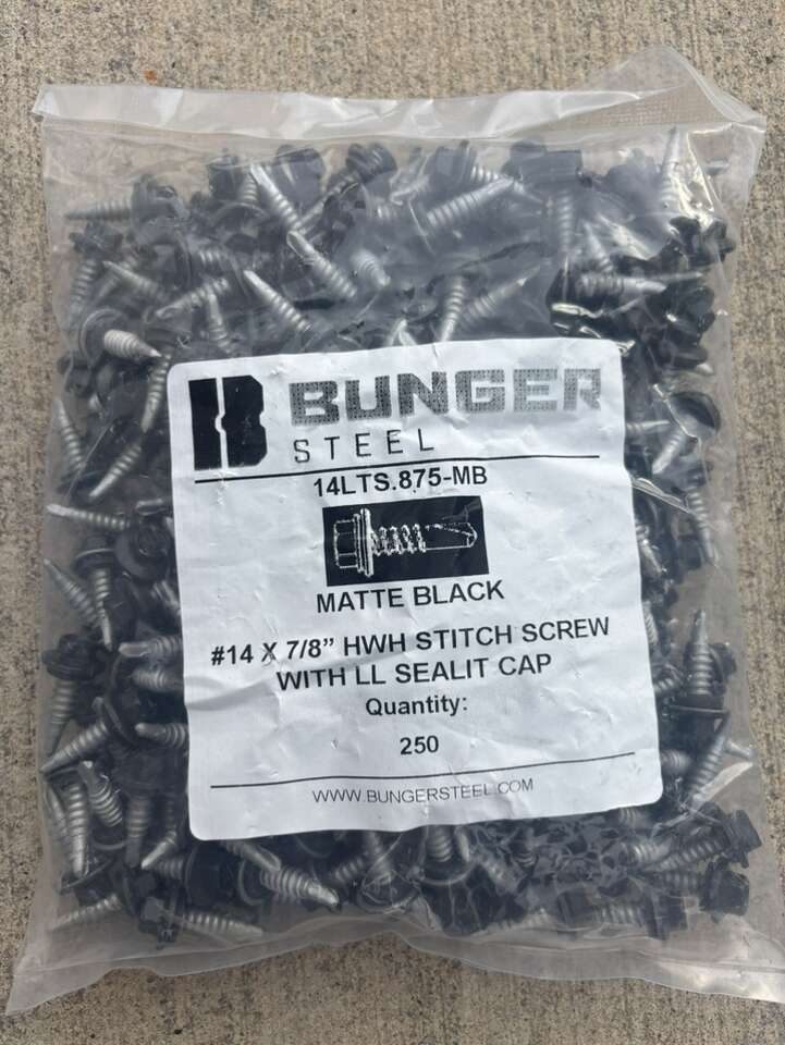 Description- Box of 2500 (10 bags of 250) #14X7/8” HWH stitch screws with LL SEALIT Cap in your choice of Polar White, Ash Gray, Matte Black or Long Life Galvanized Coating. ONLY SOLD BY THE BOX OF 2500. See photos for more product information and specifications.