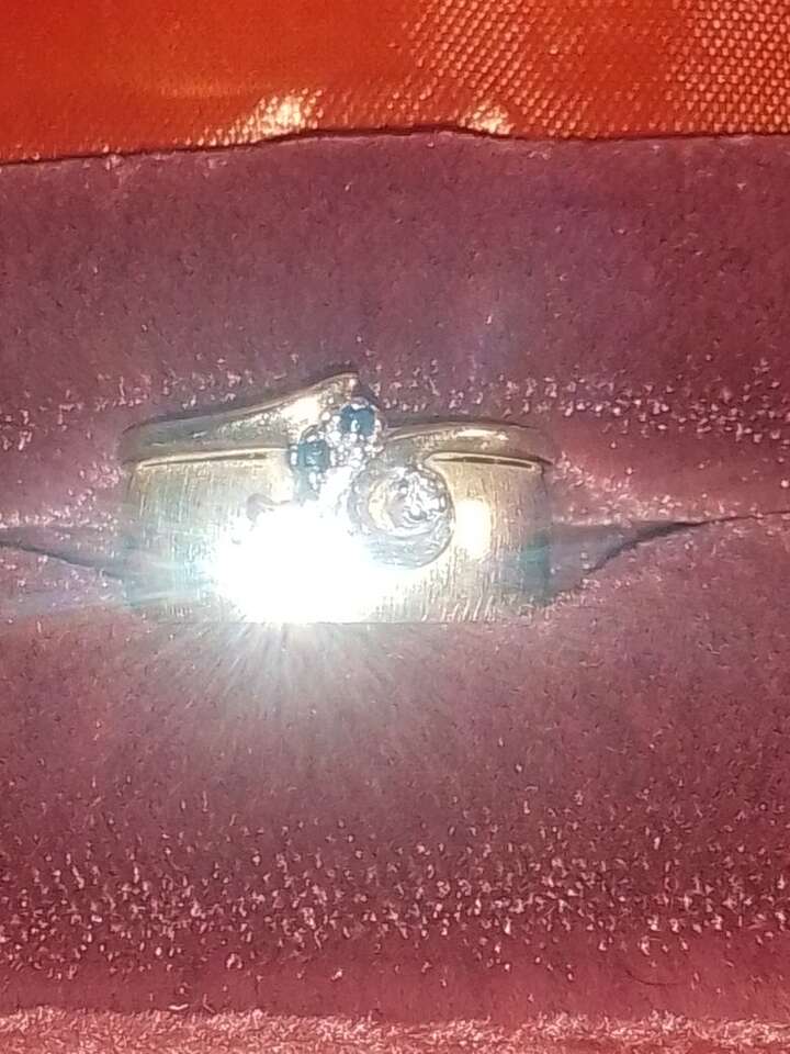 Grandmas wedding ring, 2 real diamonds and 2 blue real blue sapphires on an 6 1/2 10 carrot gold band. I had it appraised at Kay Jewels for 1.300k. $700 obo. Cash only.