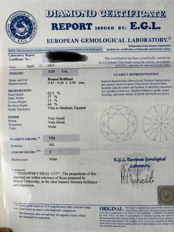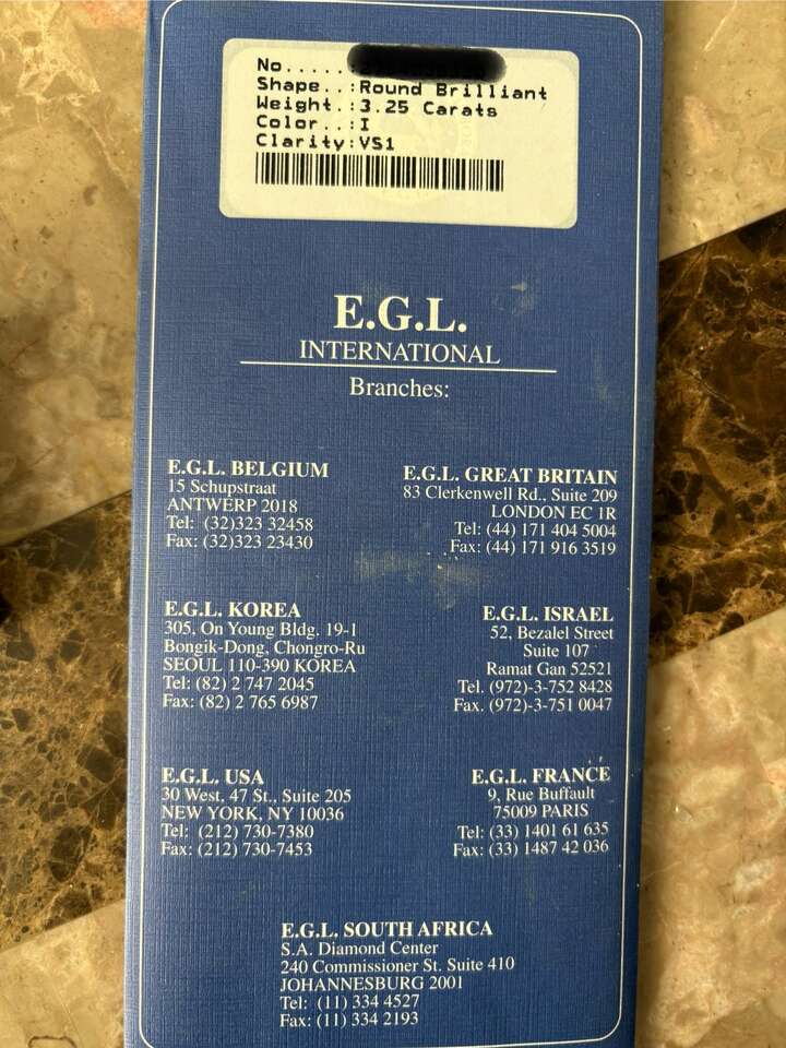 Diamond certified by E.G.L international