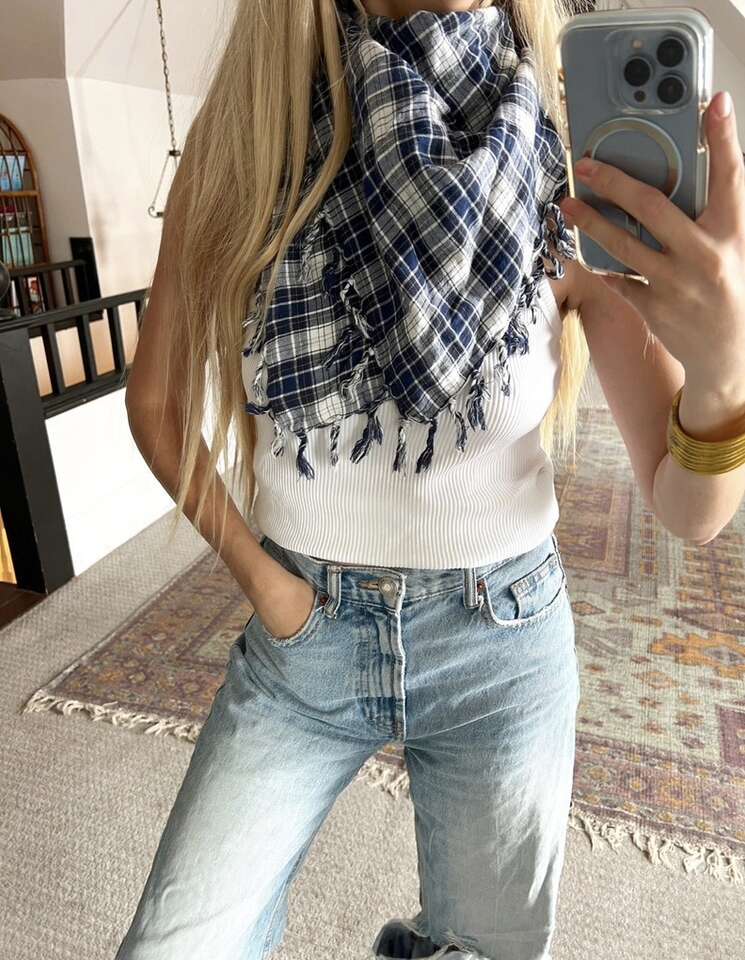 VenmoFringe Plaid Scarf New with tags I just fold these into a triangle and then tie them around my neck. They are so fun. I just have too many. Cash or Venmo. Will hold with Venmo payment.