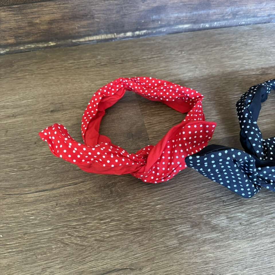 2 Pieces Polka Dot Headband Bandana Headband 50s Costume Hair Accessories Bows Wide Headwrap for Women and Girls (Red, Black,Small Dots)