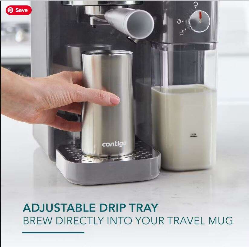 Be your own barista as you brew, froth, and create single or double shots of espresso, lattes, or cappuccinos, plus there's an optimized milk frother that delivers velvety microfoam results with any milk (yes, even oat)! Coffee to go? Yes, please! The adjustable drip tray lets you brew directly into a travel mug, so it's 100% commuter approved. The illuminated digital progress bar displays real-time heating and brewing updates for perfect results every time. Includes an ergonomic coffee tamper, and a less-mess scoop for helping keep grounds where they belong. The water and milk tanks remove for ease, and the generously sized 800ml milk tank also has a lid for spill-free storage. ESE pod compatible for extra convenience. Enjoy the coffee you love, without the wait, with the Mr. Coffee Prima Latte Luxe.