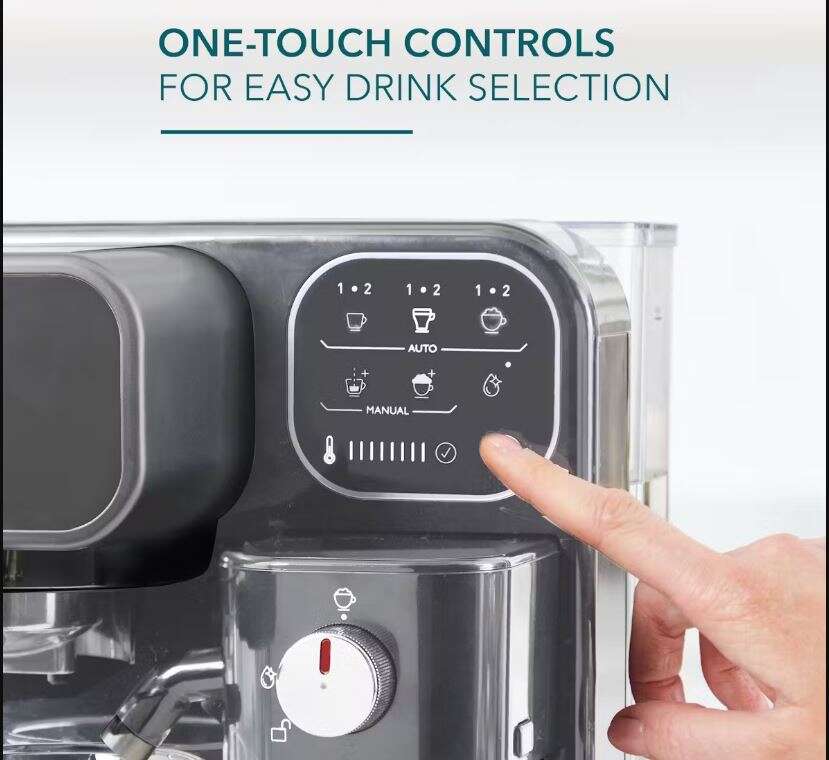 One-Touch Control Panel for Easy Drink Selection: Single or double shots of espresso, cappuccino or latte at the touch of a button