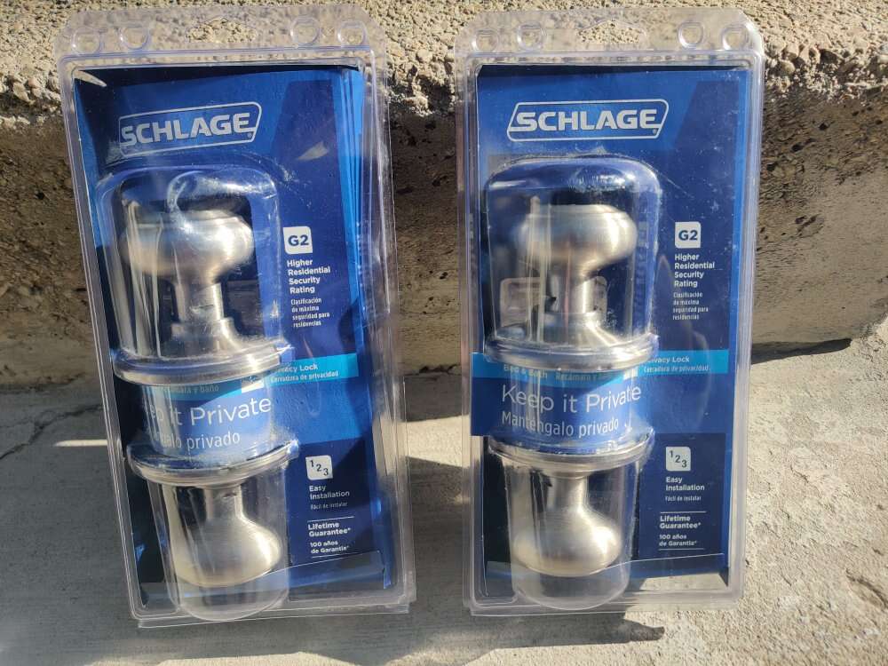 PayPalNew Schlage Bed/Bath Door Knobs Style: Georgian Satin Nickel Model: F40 V GEO 619 Qty: 2 Both sold together for $30