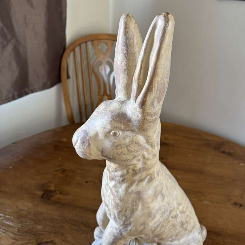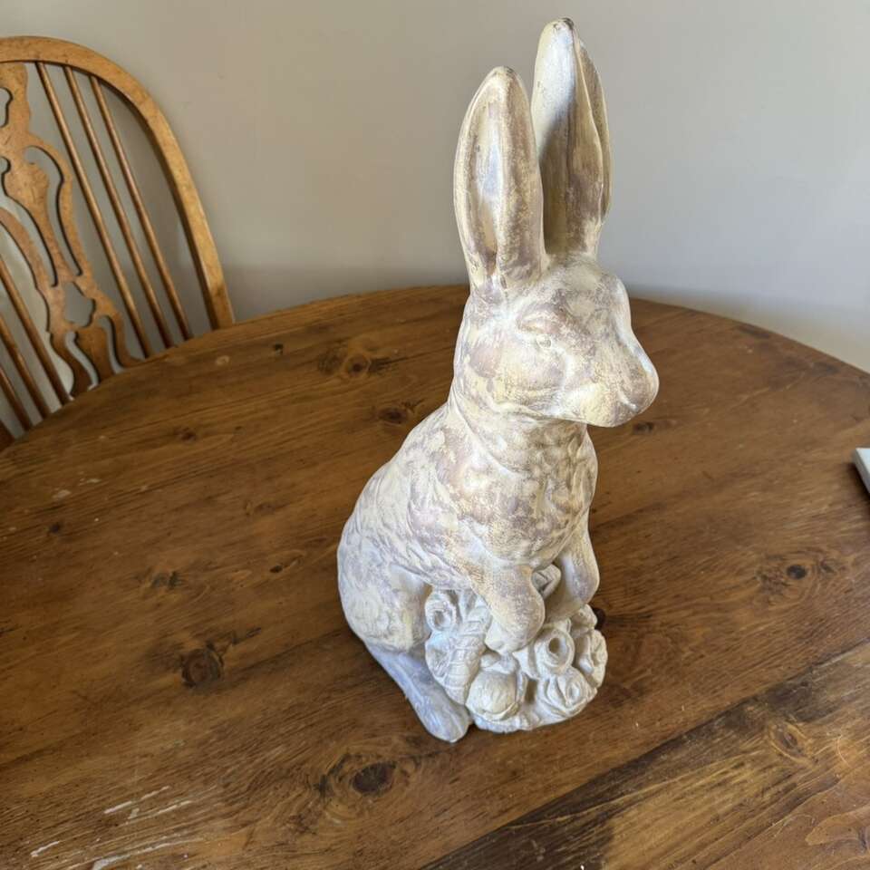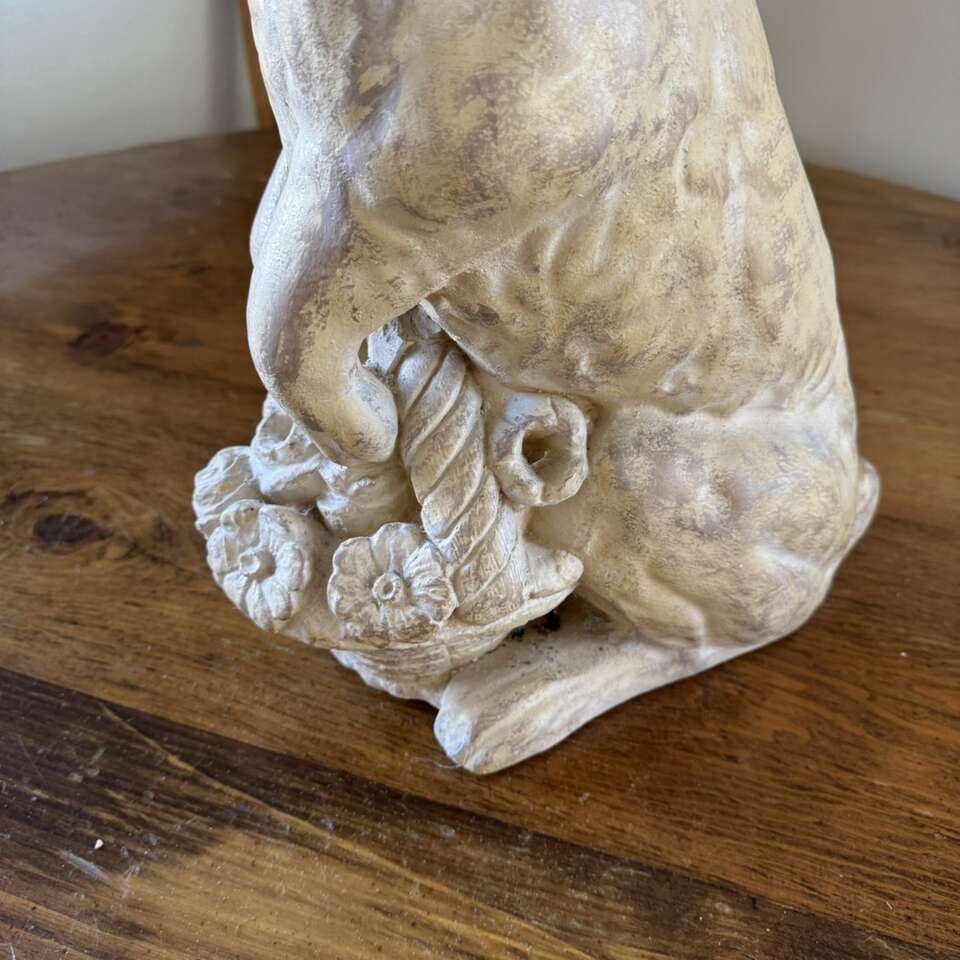 Tall Vintage Looking Rabbit Bunny & Basket 24” T Statue His foot was glued back on (see photos) Super cute for a Peter Rabbit party or Easter get together
