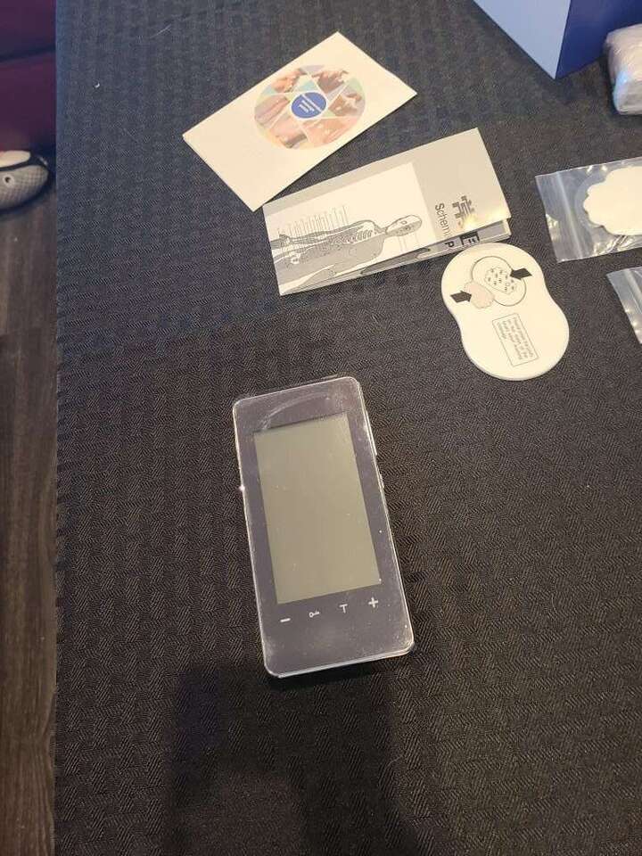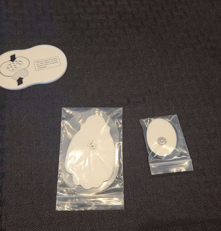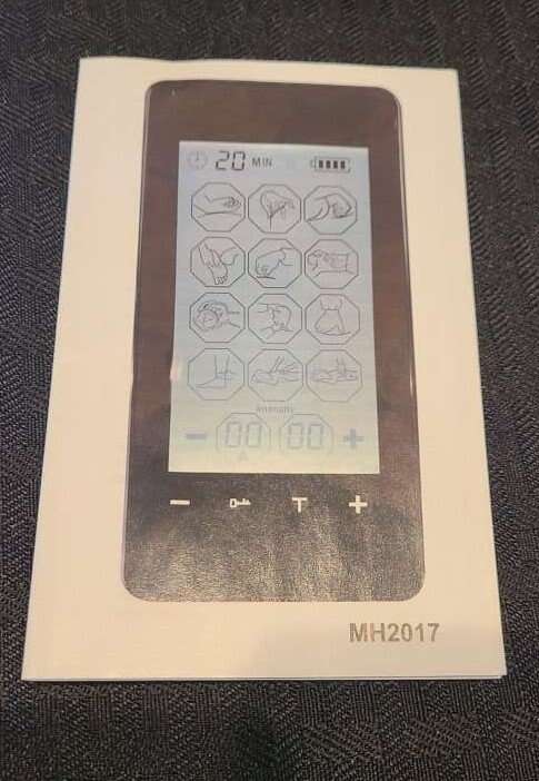 TENS/EMS/PMS Unit Massager, Pain Relief muscle tension, stress, poor circulation. Muscle Stimulation. 12 modes 20 intensity levels LCD Display with Stylus Adjustable Timer Rechargeable USB Cable Two sets of leads wires with Electrode Pads User Manual Poster of Treatment Points Unit Color Gold
