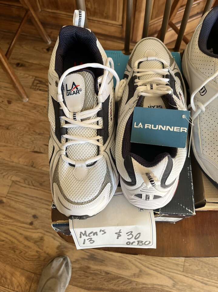 two pair of brand new men’s 13 running and tennis shoes. See photograph for exact description size and price. 30 each or best offer.