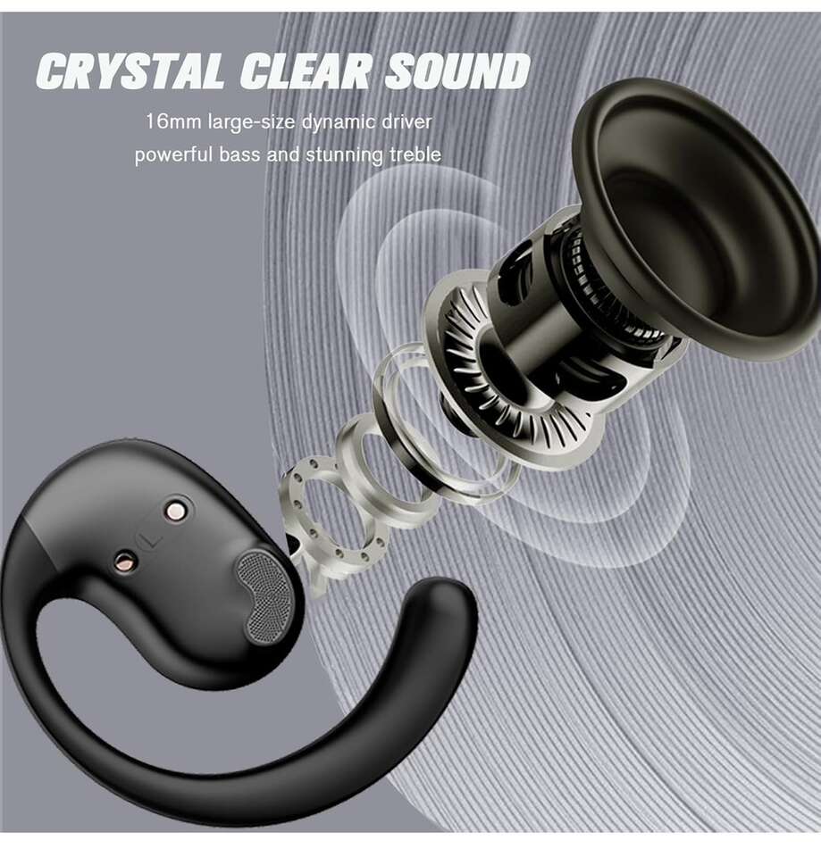 ZelleOut of Ear Open Ear Headphones Outside The Ear Wireless Ear Hanging Bluetooth Headset Ows Over The Ear Open Ear Buds Earbuds Outside The Ear Headphones Bone Air Conduction Earbuds Black