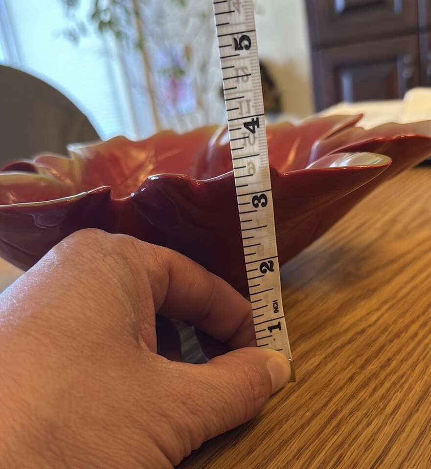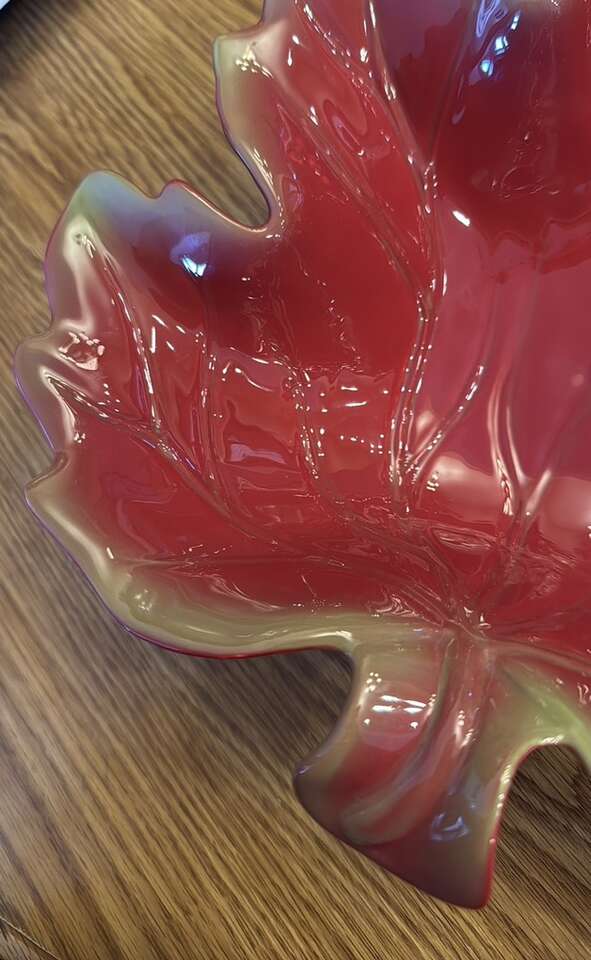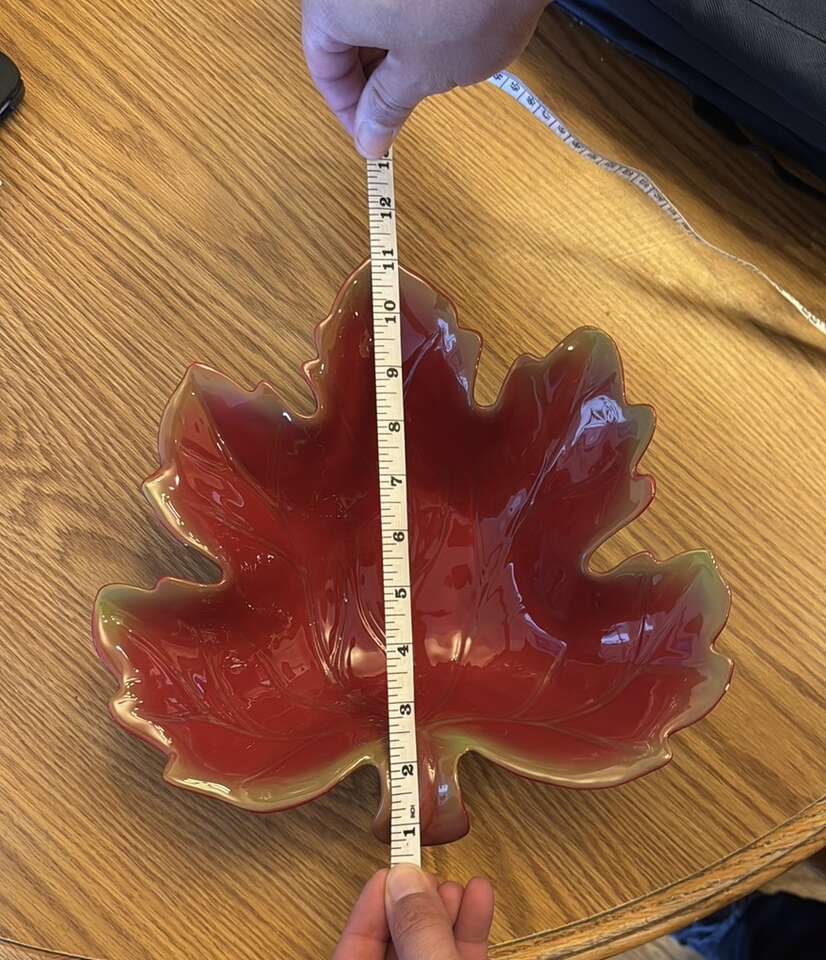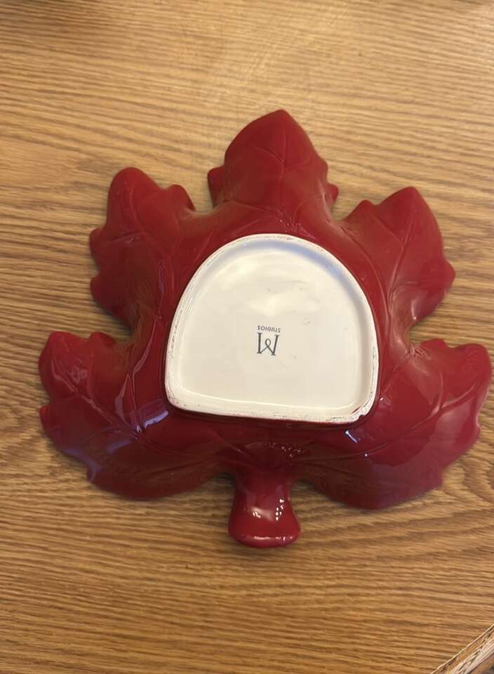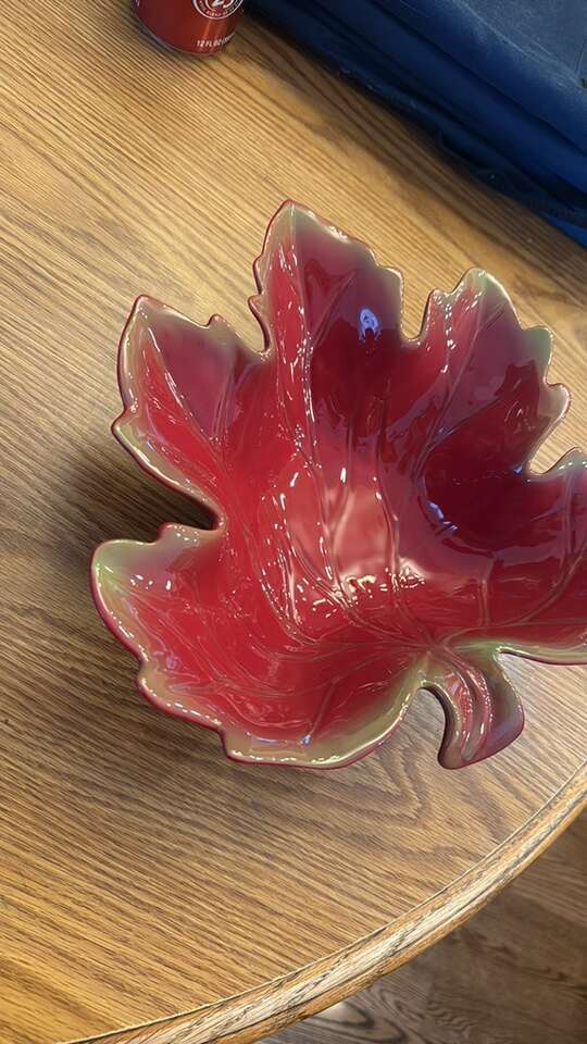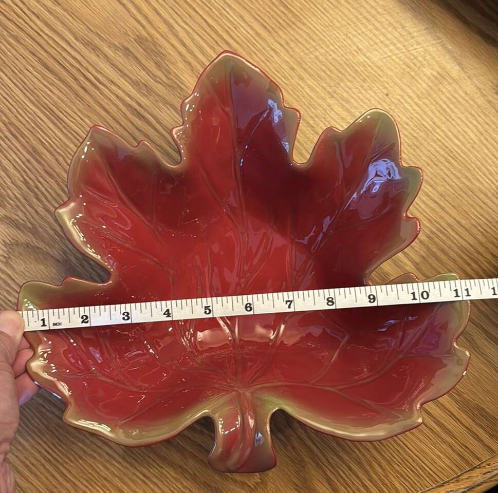 VenmoBeautiful red leaf-shaped decorative bowl. Perfect for adding a touch of nature to your decor. Great condition. No cracks. See pictures for measurements