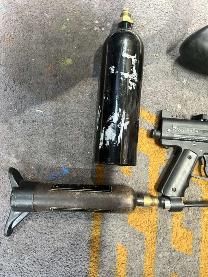 ApplePayPaintball gun, w/hopper and 2 tanks, older gun, but still works fine. Come by and check it out. It was stored indoors, and has been treated well when used.