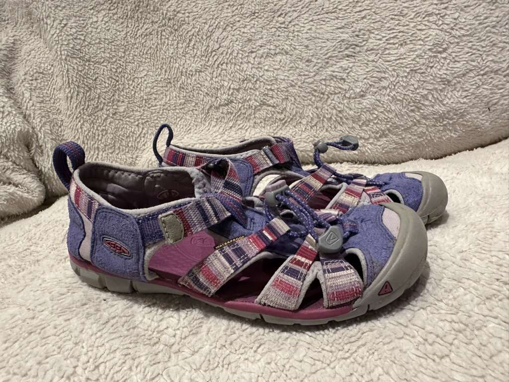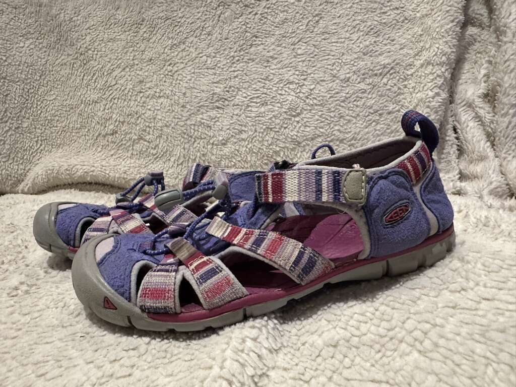 Keen youth size 3 purple with stripes waterproof, hiking sandals. These are in good condition, see photos for details. I take cash or Venmo, cash is preferred. Text is best. 801-201-4446. Check out my other ads for additional sizes and styles.