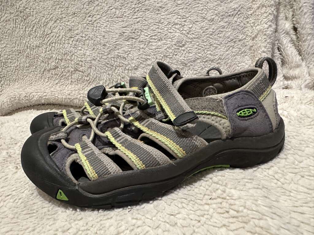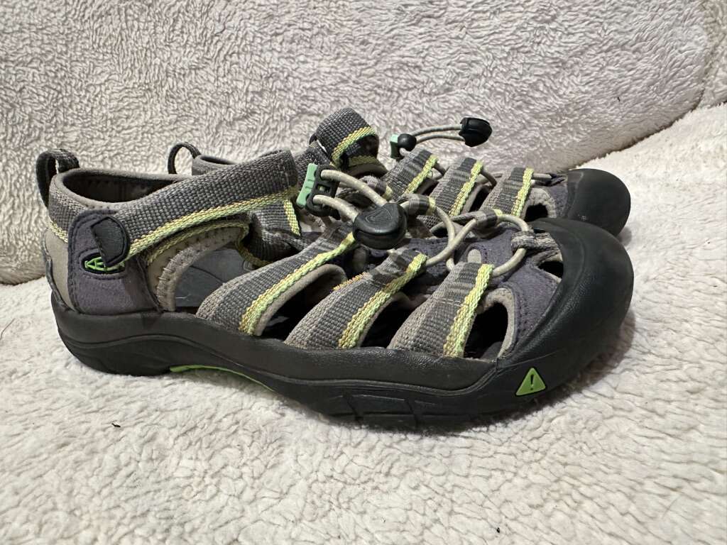Keen youth size 3 gray stripe with lime trim, waterproof hiking sandals in good condition. See photos for details. I take cash or Venmo, but cash is preferred. Text is best. 801-201-4446. Check out my other ads for additional sizes and styles.