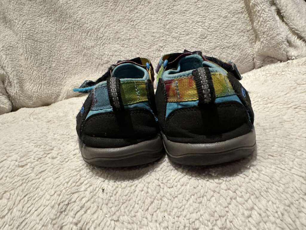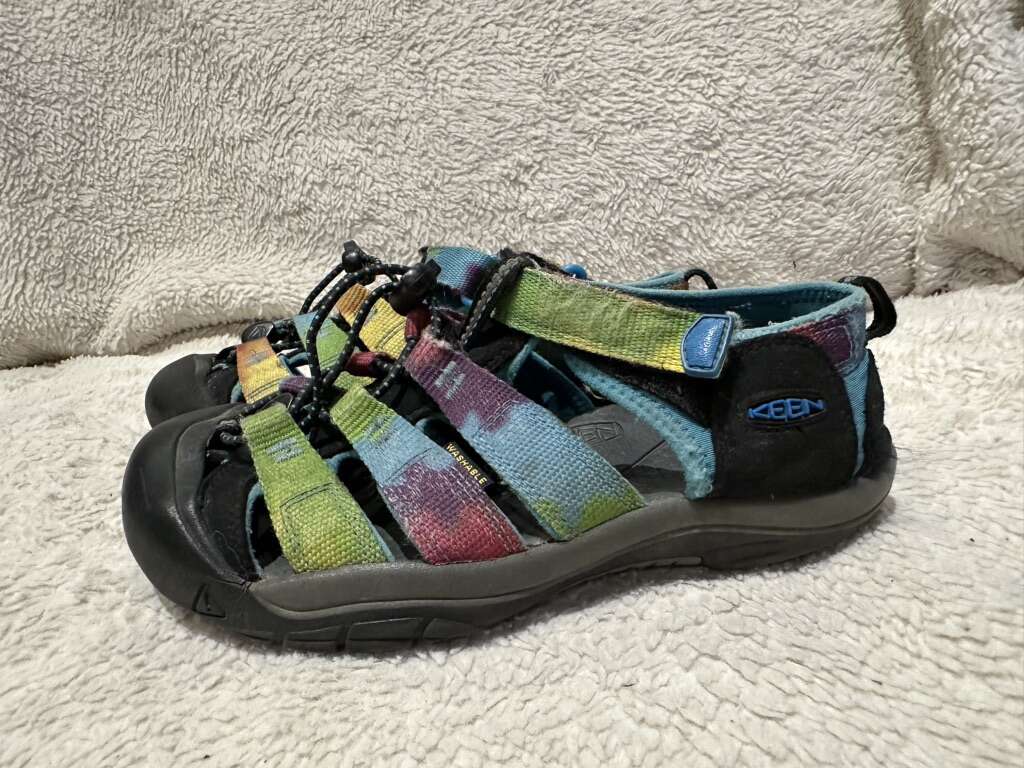 Keen youth, size 3, rainbow with black and blue trim, waterproof hiking sandals. These are in good condition, see photos for details. I take cash or Venmo, but cash is preferred. Text is best. 801-201-4446. Check out my other ads for additional sizes and styles.