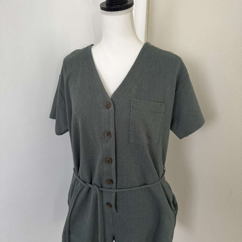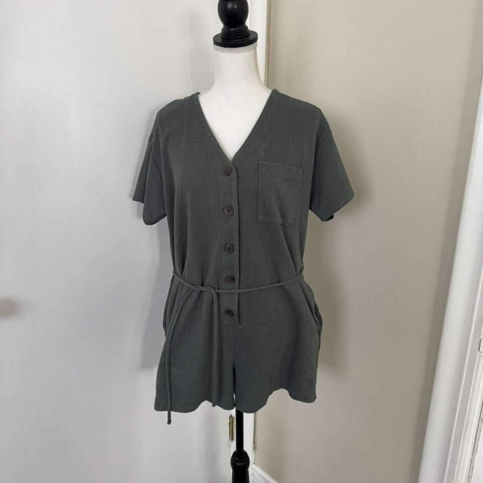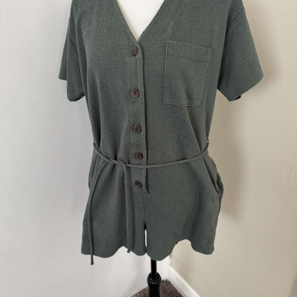 OLD NAVY Women's Size M Textured-Knit Utility V- Neck Short-Sleeve Romper
