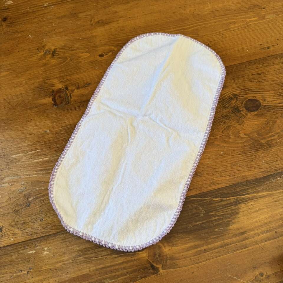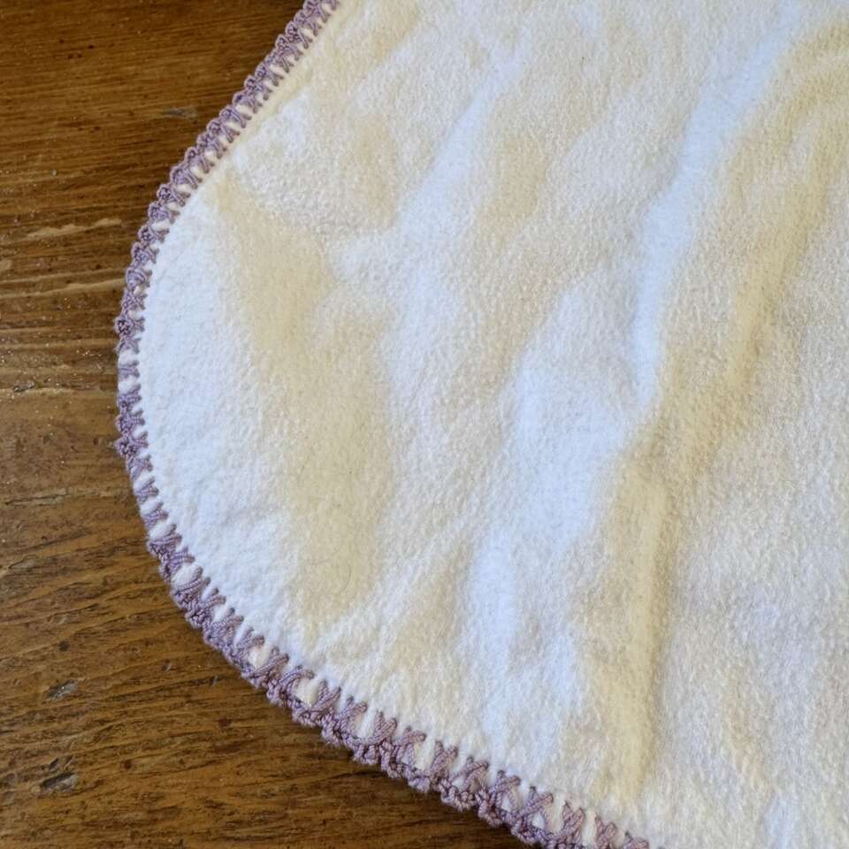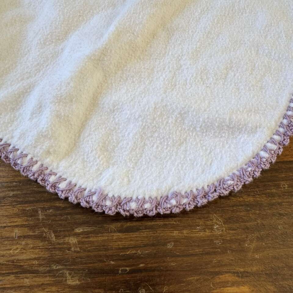 White Cotton Burp Cloth with Lavender Crochet Edge