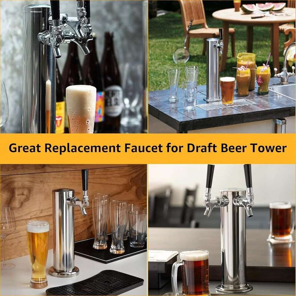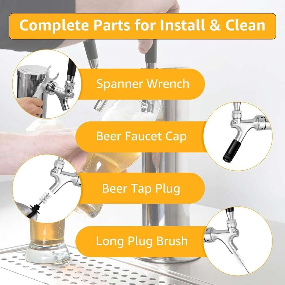 Draft Beer Line Shank Faucet Kit, Beer Keg Tap Kegerator Tower Dispenser Replacement Set with Self-Closing Spring Spanner Wrench No Leak