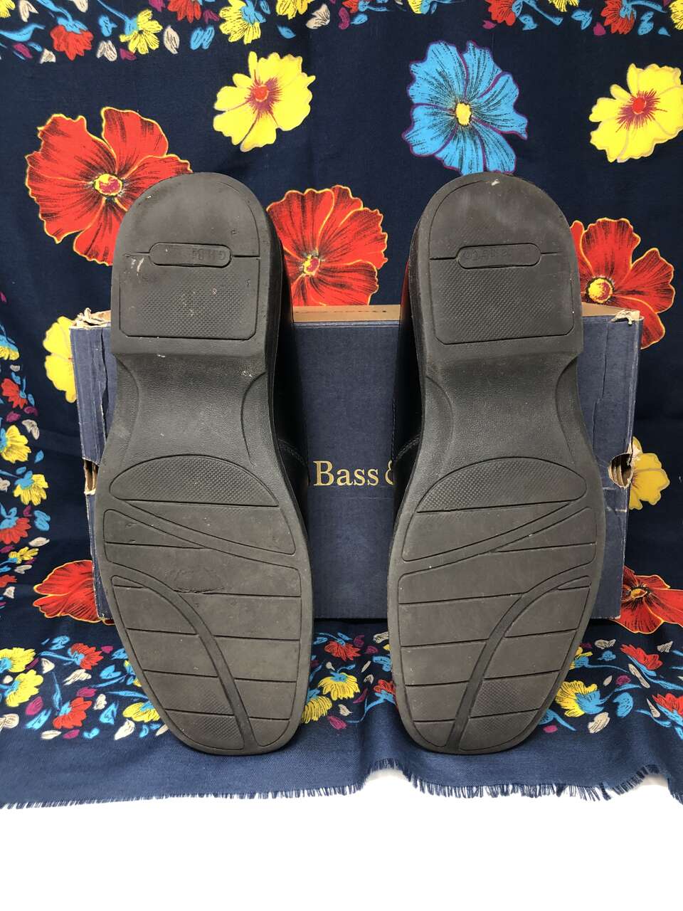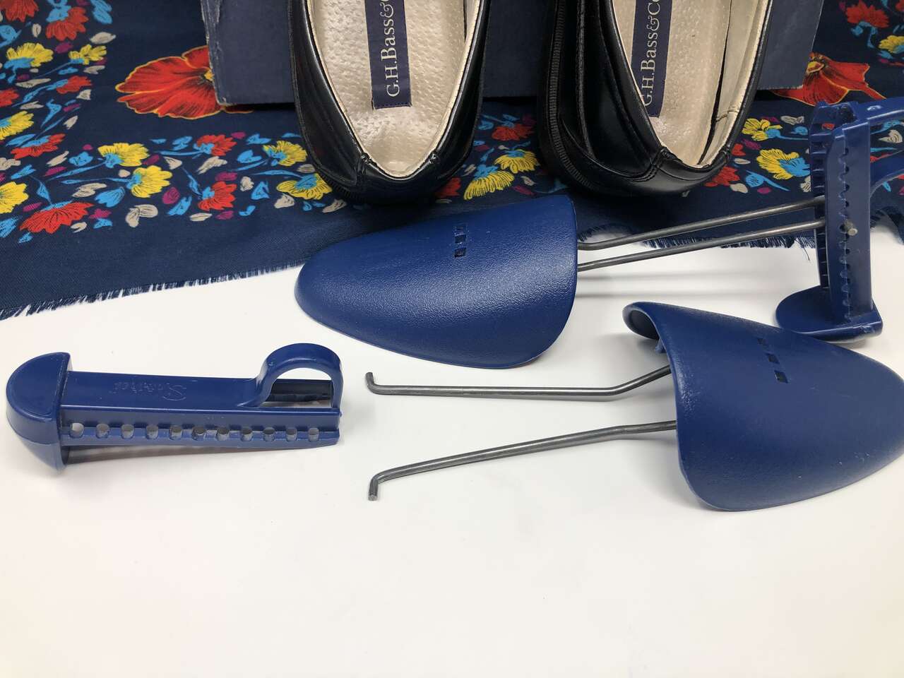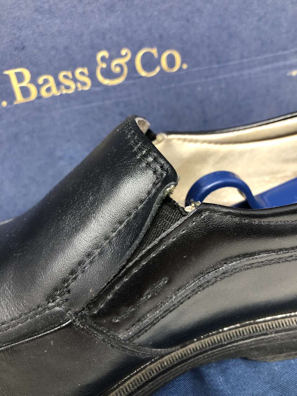 VenmoMen's size 10 G.H. Bass & Co. leather slip-on dress shoes with shoe stretcher/shapers included. The shoe stretchers are adjustable. Simply squeeze the two metal prongs together to release it from the foldable edge with the holes. Replace it in the holes you desire to fit other shoe sizes. They are really easy to use and help maintain the quality of your shoes. The shoes are very high quality. They are hand-made and the stitching is immaculate. The scuff marks from being worn are shown in photos. Original box is included and worn around the edges of the lid.
