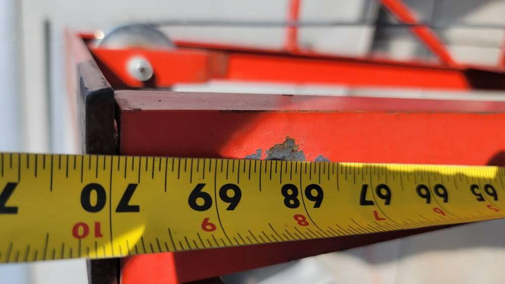 20" x 20" platform 60" platform raised height. heavy duty, all steel built. roll easy easy. hand cranks up easy, and comes down with load breaking. really nice to lift heavy boxes or equipment without using a person back. safe way to lift up to 500 lbs.