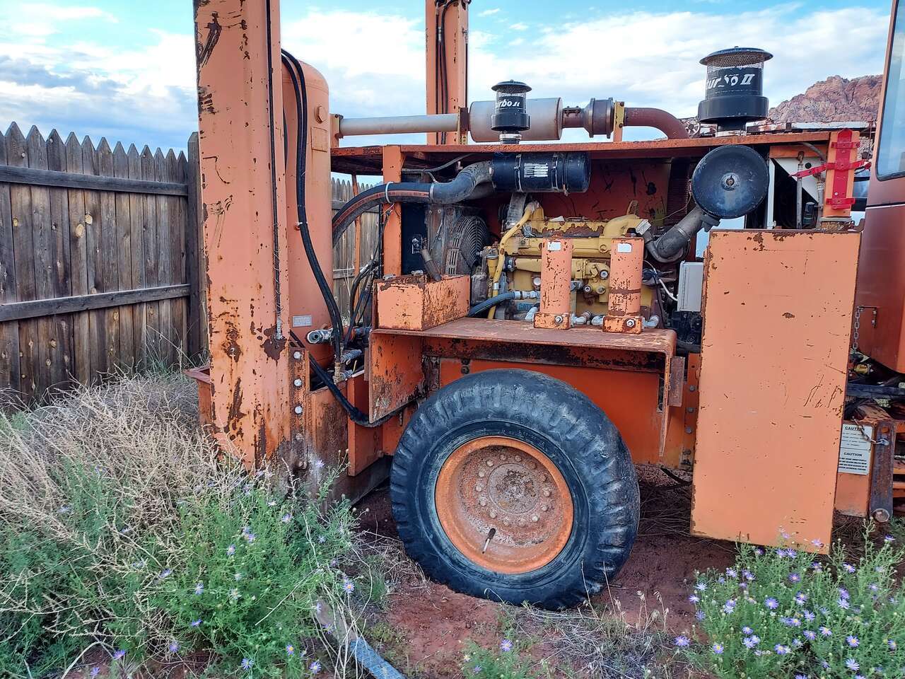 For sale is a Cat powered mobile rotary Air drill This is a very versatile unit in that it can drill from almost unlimited angles. This might be an amazing unit for water well drilling or drilling in earth anchors Look close at the pictures and call with any questions