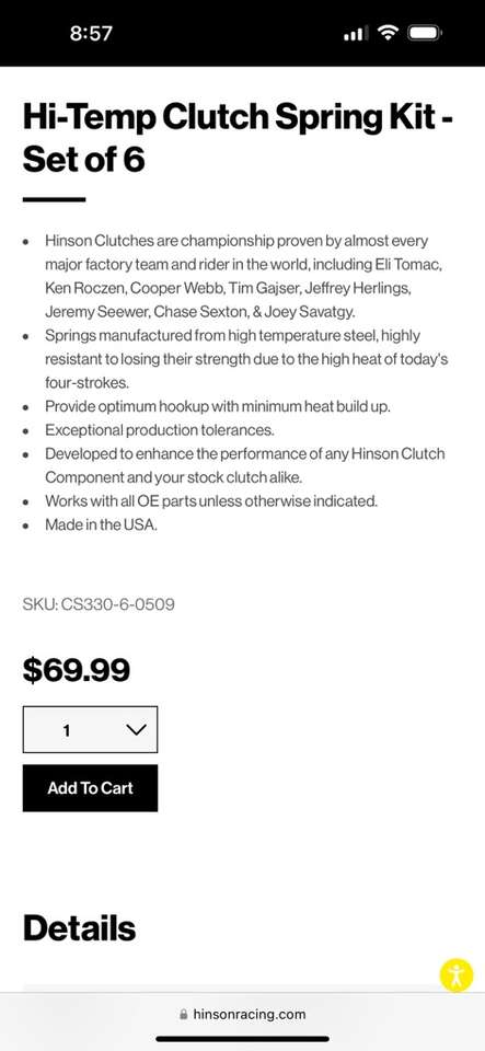 Hinson Hi-Temp Clutch Springs for Suzuki RM-Z450/LT-R450/RMX450Z & Honda CR500R (P/N: CS330-6-0509). Brand new, never opened, perfect condition! Please call or text Rich @6two3-2zero8-zero22three with any questions.