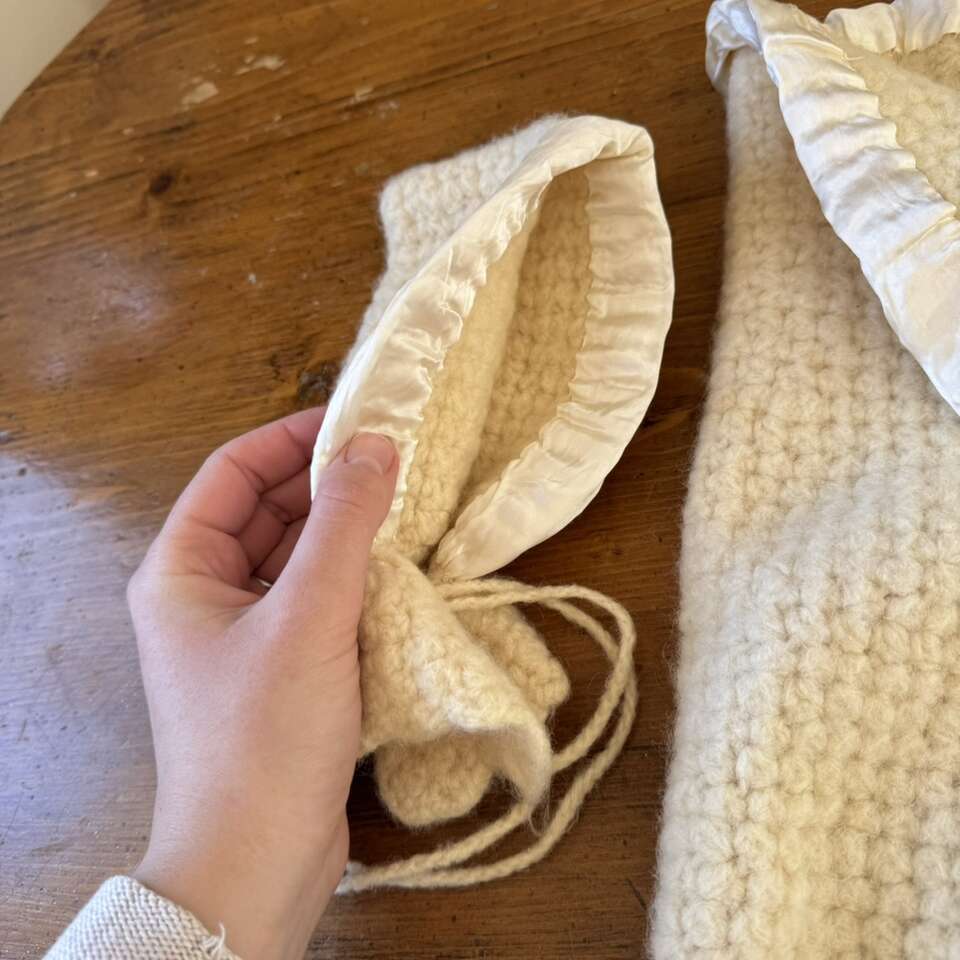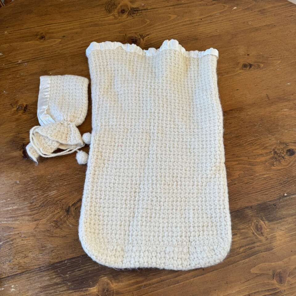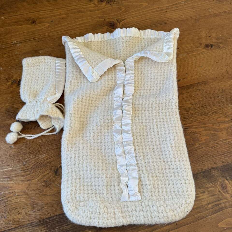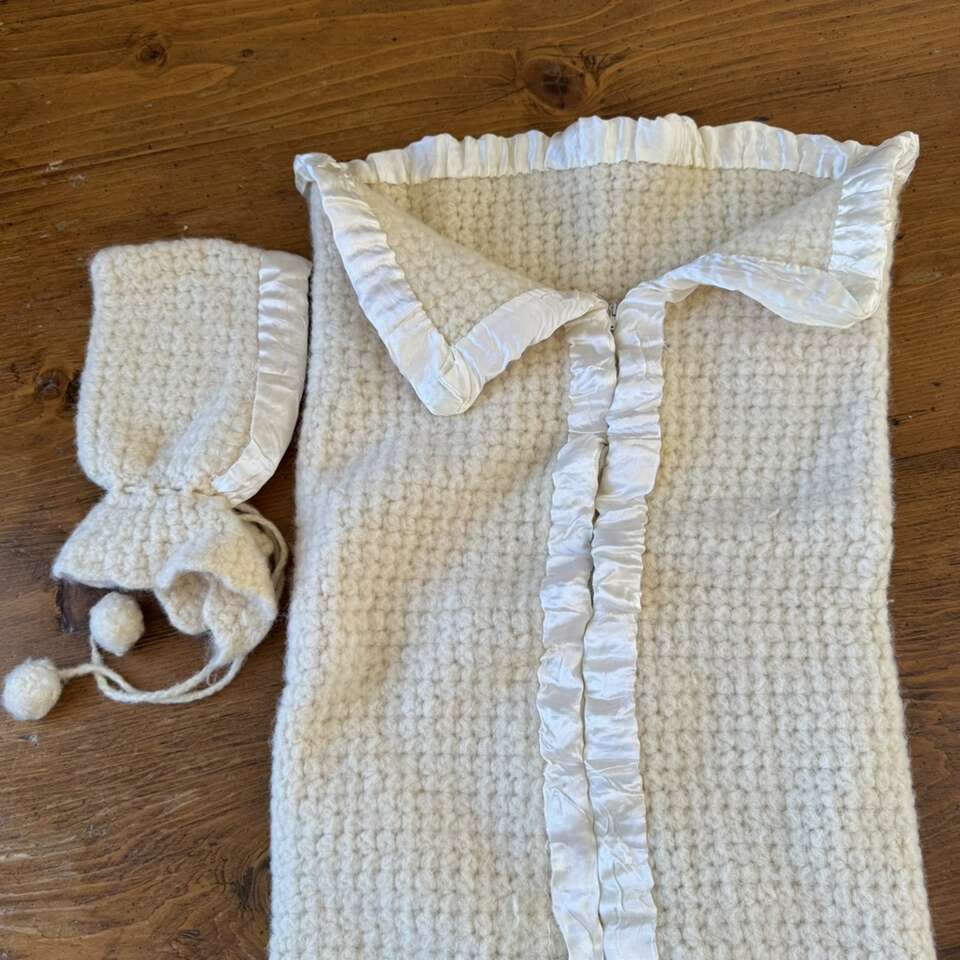 Vintage 1960's Cream Baby Bunting & Bonnet Zipper