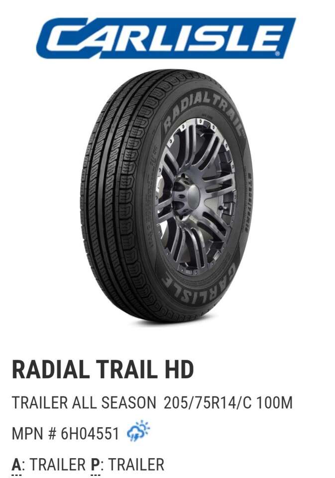 Carlisle $580 -4 new installed onsite 205/75/14 -D