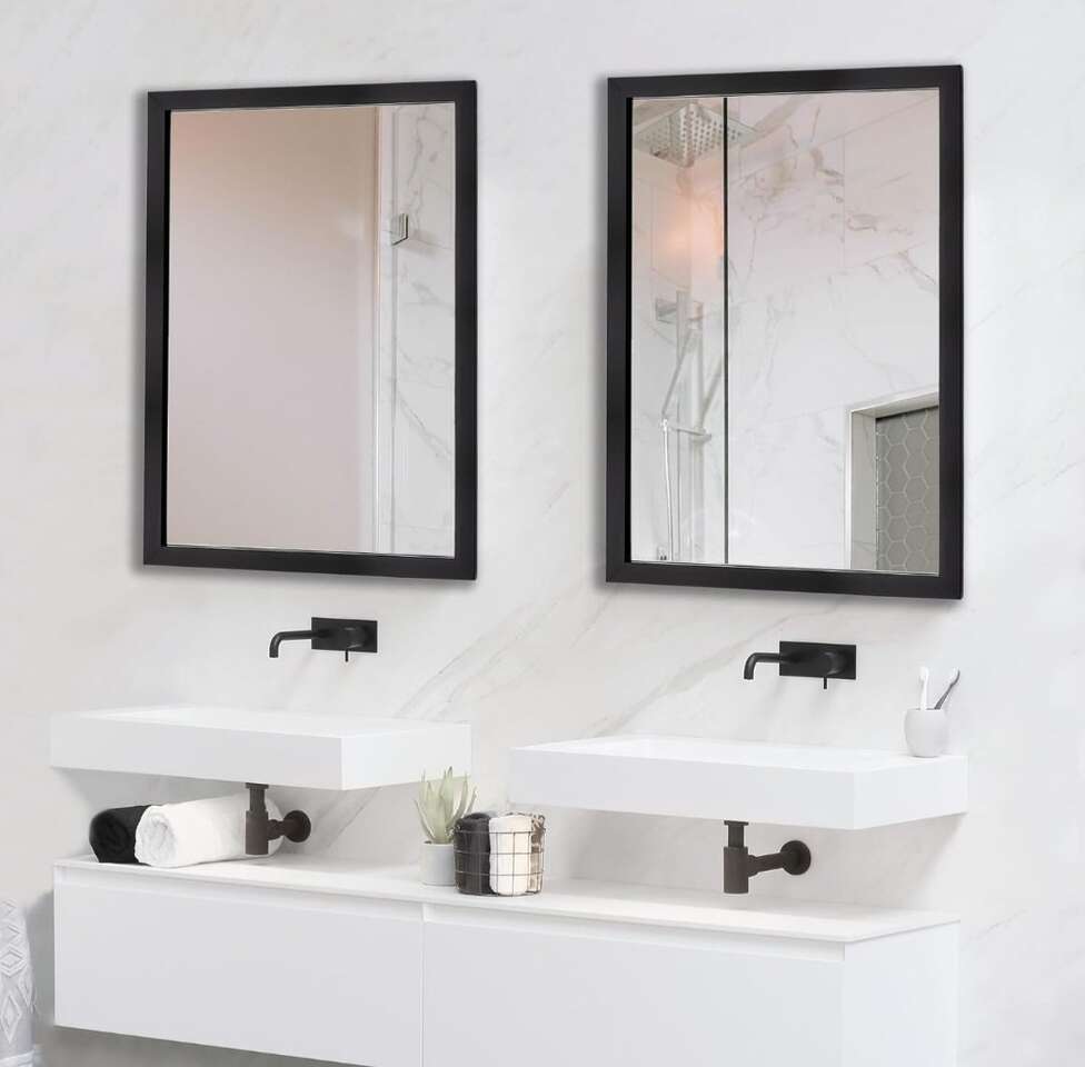 GooglePayThis is a new 28" x 20" rectangular black wall mirror by Ruomeng.