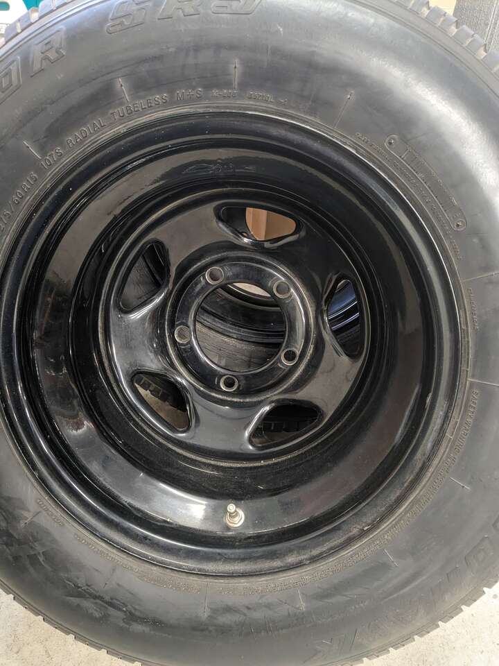 I HAVE (2) 15” DIA X 10”W 5X5.5 BLACK WHEELS $75.00 EACH - TIRES NOT INCLUDED, THEY HAVE BEEN REMOVED AND DESPOSED OF.