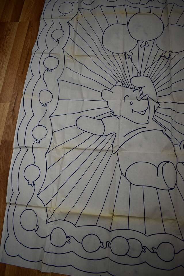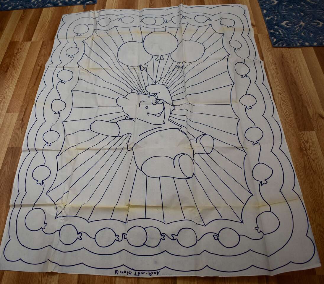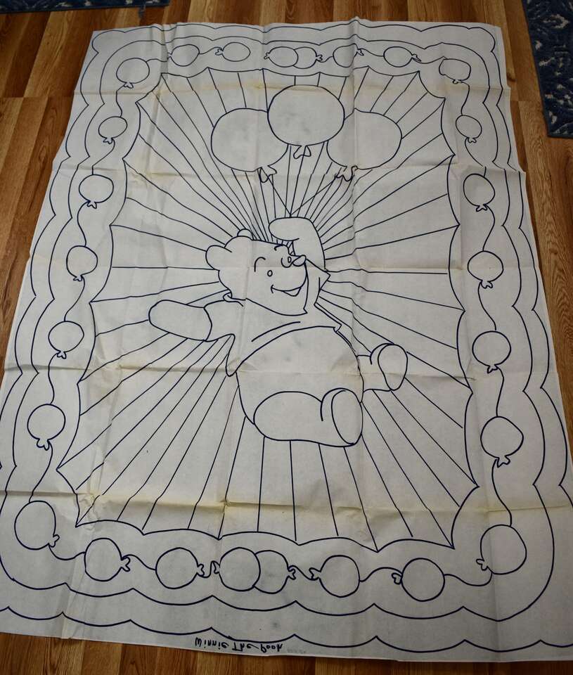 IT MEASURES… THE QUILT PATTERN MEASURES… APPROX. 57 1/2 INCHES LONG AND 41 INCHES WIDE. IF YOU DESIRE TO USE THE SCALLOPED EDGE FOR THE OUTER EDGES THEN IT WILL BE A LITTLE SMALLER. YOU CAN ALSO MAKE IT LARGER IF YOU WANT TO, ALSO.