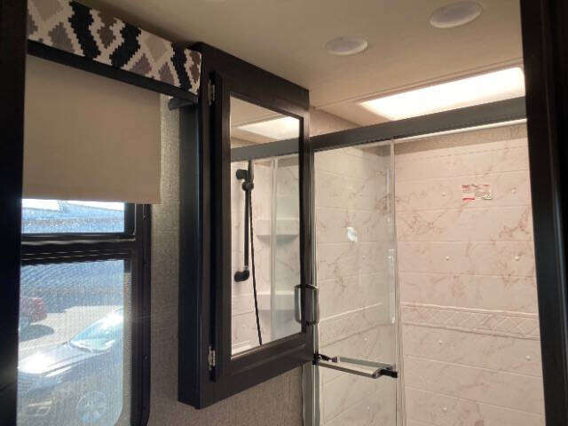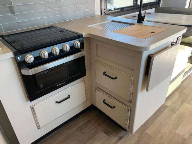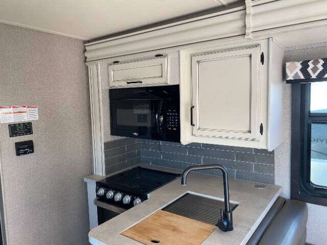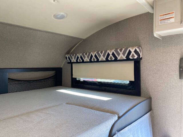 Inside, you'll find all the amenities you need for a comfortable trip, including a fully-equipped kitchen, a cozy living area, and a private bedroom with plenty of storage space. The 27U floor plan is designed to maximize living space while still providing a separate sleeping area for added privacy. The modern design and high-quality materials used in the construction of the Greyhawk ensure long-lasting durability and style.