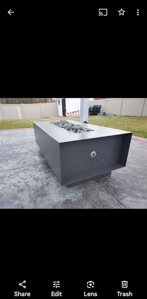 Fire. Pit is all steel construction featuring 150000 B.T u burner ,stainless steel gasline's, key valve, leveling feet and your choice of color