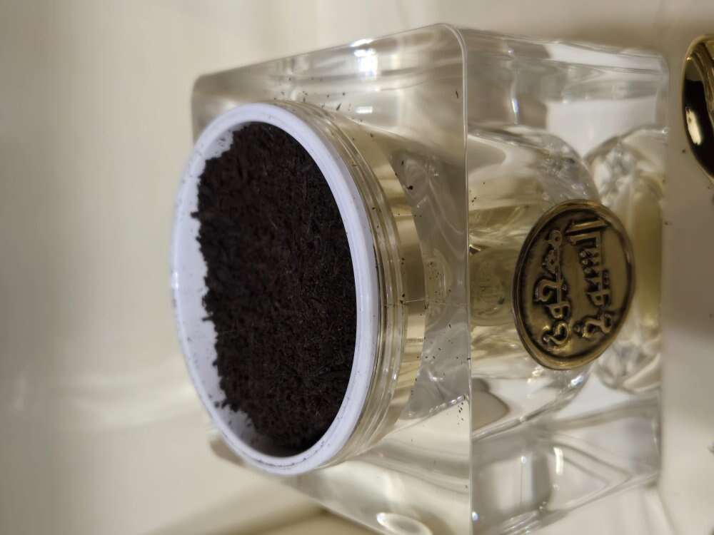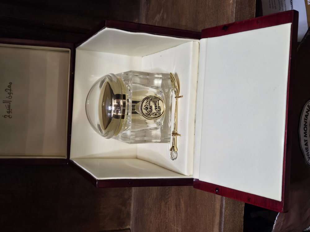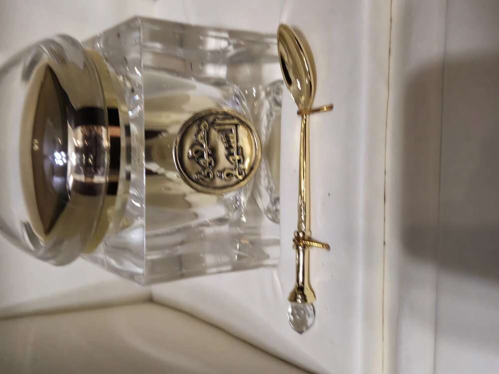 This deep red box holds an ornate jar of Arabian Oud incense and a gold colored spoon with crystal ball on the end. The jar inside contains Oud and is 3 1/2 inches square with a domed top and is 4 1/2 inches high. The incense inside is Arabian Oud. Oud is traditionally known as black gold in the Middle East as it is a prized ingredient that comes from one of the rarest and most expensive wood in the world. It is very seductive, smoky, woody, yet sweet to earthy with leather and spice fragrance. The smell is exotic and something you will never forget. The smell is wonderful. Just reduced the price by $5.00.