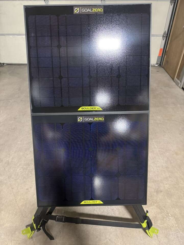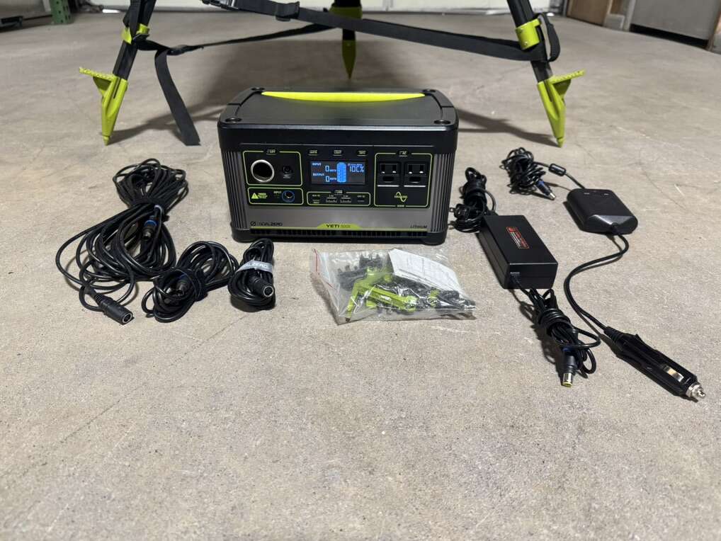 Like New Goal Zero Yeti 500X Boulder Solar Tripod 2 Boulder 30 Watt Solar Panels Boulder 30 Travel Case 6 Light a life lights 12v Car Charging Cable.