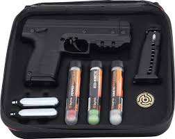 This is the LE Launcher. We have it in Black and Orange. We are a Byrna Defense Dealer. Please get in touch with us for more information on all Byrna products. The Byrna LE, Byrna's most powerful handheld launcher! This kit contains no chemical projectiles and is legal in all states in the US. Discription: The Byrna LE features a completely redesigned trigger interface and valve assembly to fire .68 caliber rounds at speed of up to 330 feet per second. The new trigger design on the Byrna LE allows for a much smoother and lighter trigger pull, providing a better experience for the shooter. This kit does not come with chemical projectiles. Kit Details: (1) Byrna LE Launcher (1) 5-count tube Pro Training Projectiles (1) 5-count tube Kinetic Projectiles (1) 5-count tube Eco Kinetic Projectiles (2) 5-round Magazines (2) 12g CO2 cylinders (1) Byrna Carrying Case Features: .68 caliber projectiles (15 per Kit) 5-round Magazine (2 per Kit) Uses 12-gram C02 (2 per Kit) Picatinny Rail Honeycomb over-molded grip for better control Ambidextrous safe/fire switch that allows for easy toggling for both left-handed and right-handed individuals Straight trigger with a 4-6 lb. trigger pull weight White dot sights for improved target acquisition PATENTED PULL-PIERCE TECHNOLOGY: CO2 is stored in the launcher unpunctured until the first trigger pull. On first trigger pull the CO2 is punctured and a projectile is launched simultaneously. UPGRADED WHITE DOT SIGHTS: High-Contrast bright white sights which allow for quicker acquisition in high stress situations. SUPER-CHARGED: Max projectile speeds of 330 feet per second. STANDOFF DISTANCE: Accurate at up to 60 feet. Proformance: Kinetic Energy - 15.2 joules Muzzle Velocity - 330 fps* Magazine Capacity - 5 rounds Shot Capacity per C02 - 17 shots** Effective Range - 60' CO2 Size - 12 gram Pistol Size - Mid-sized