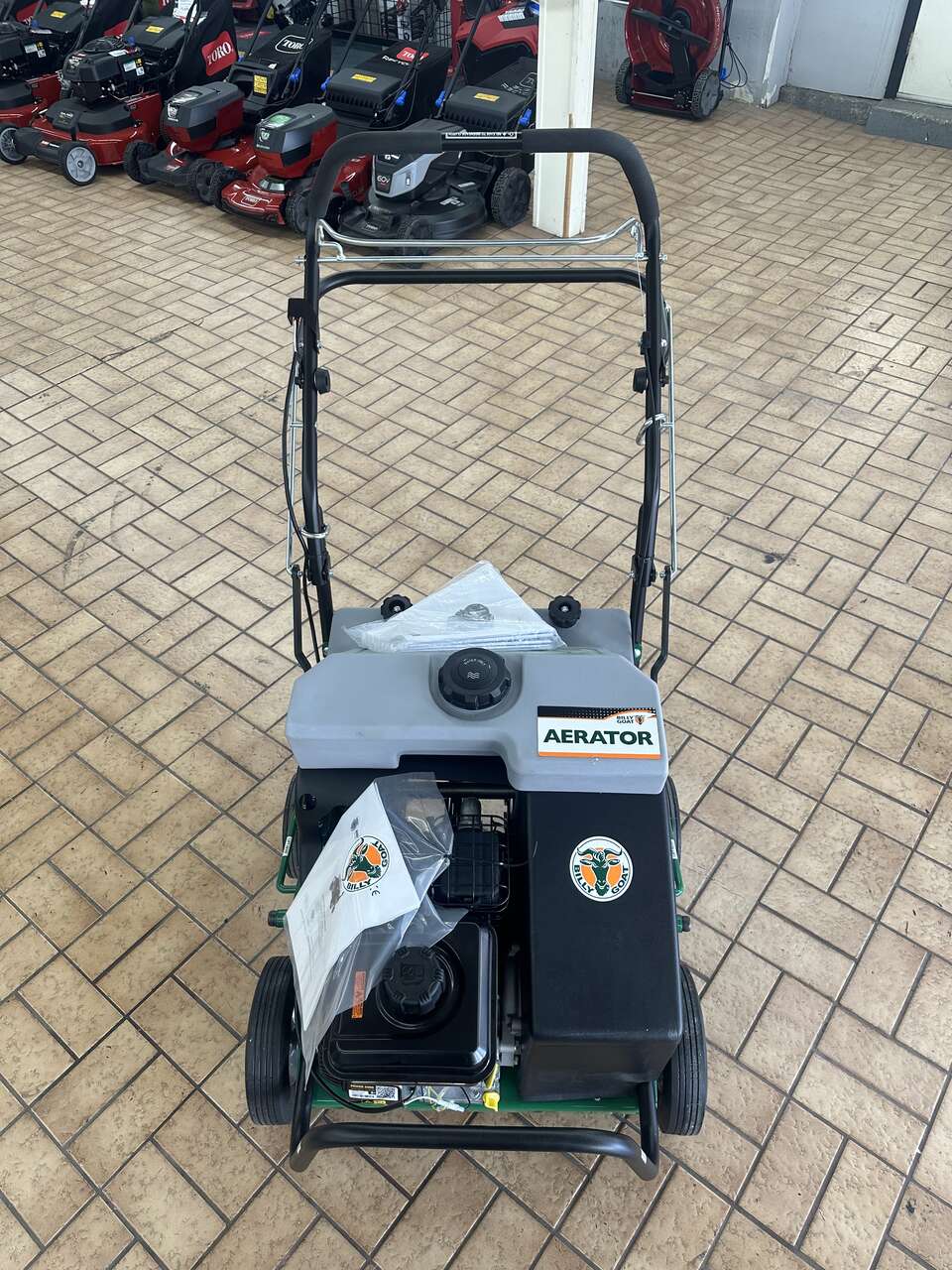 This Unit Completely Eliminates The Conventional and Cumbersome Center Wheel And Center Drum Designs Found On Other Units, Which Are Prone To Wear, Vibration and Damage. Billy Goat’s Outboard Drive Wheels Also Eliminate Center Wheel Slip and Damage From Ramp Loading With The Tines Engaged.