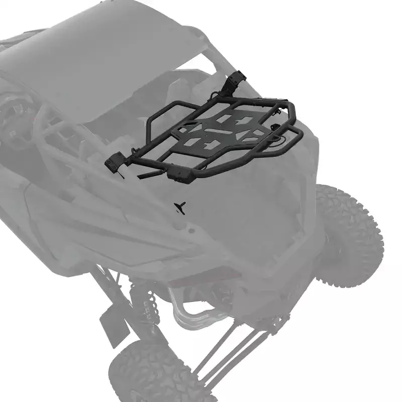 Pivoting Spare Tire Carrier for RZR Pro R Part # 2890863-458. Contact Carson at 435-257-5346 for pricing, shipping options, or further details. This Pivoting Spare Tire Carrier is the perfect solution for carrying a spare tire on your RZR Pro R without sacrificing valuable cargo space. Designed for secure and convenient mounting, it features a single-handed release lever with dual latches, allowing for a quick and effortless release when needed.