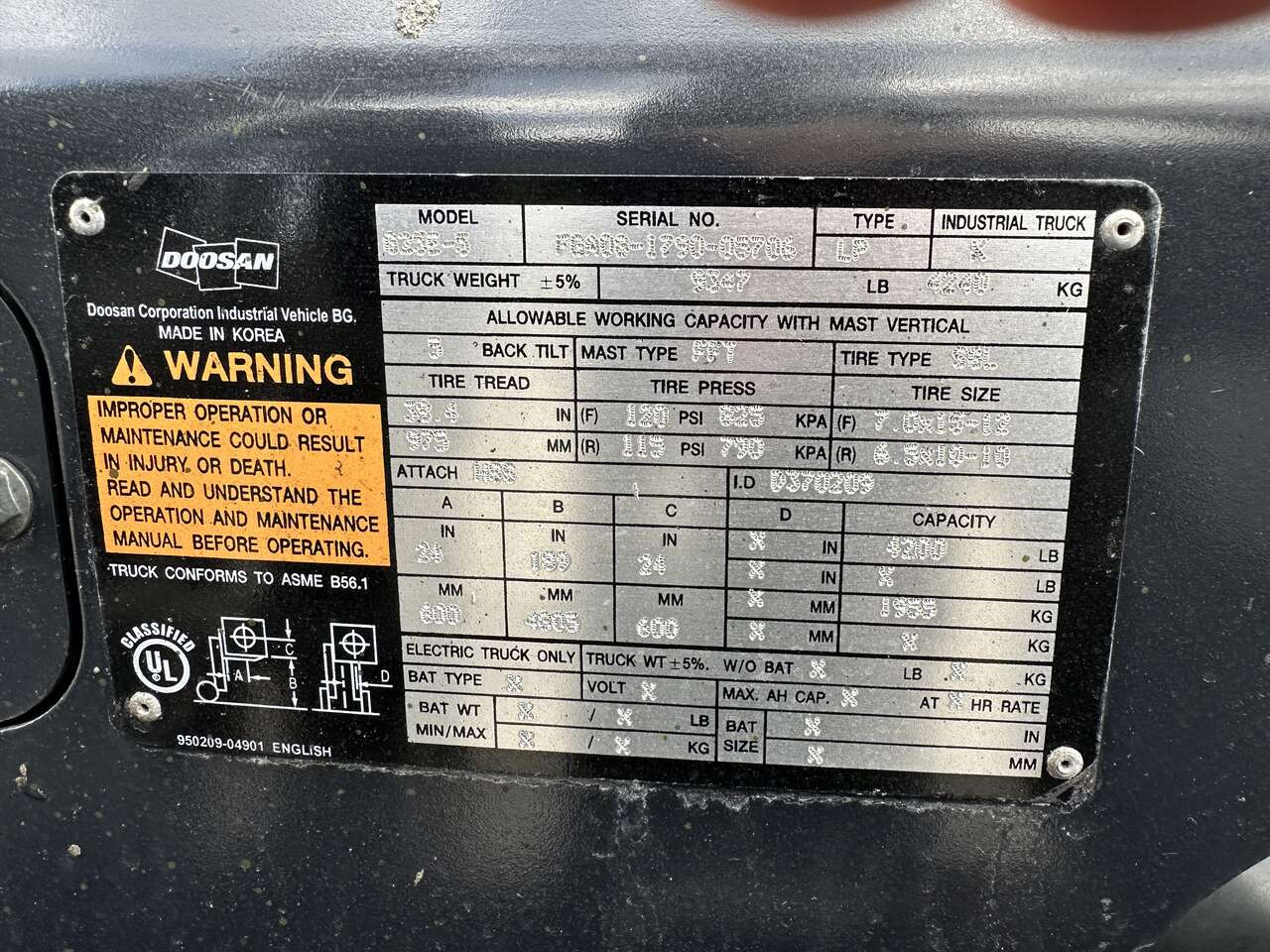 Warehouse Forklift Doosan 5,000 LB 15' 9" Lift Height