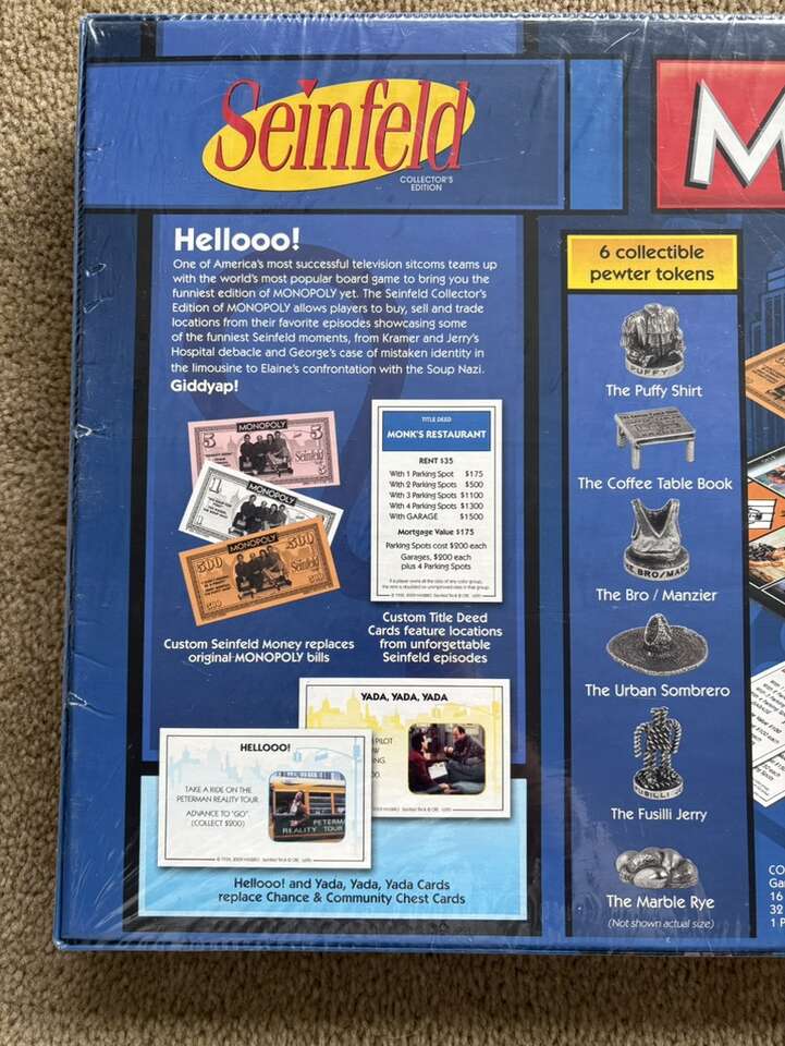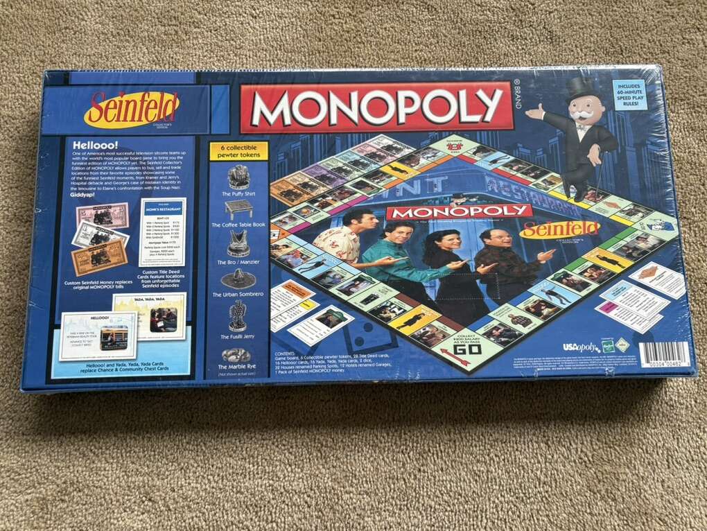 NEW (sealed in plastic) Monopoly: Seinfeld Collector's Edition. The fast-dealing property trading game. Based on the beloved TV show. 2-6 players, age 8+. USAopoly, Hasbro, 2009. New, unopened condition. Text only. Cash or Venmo.