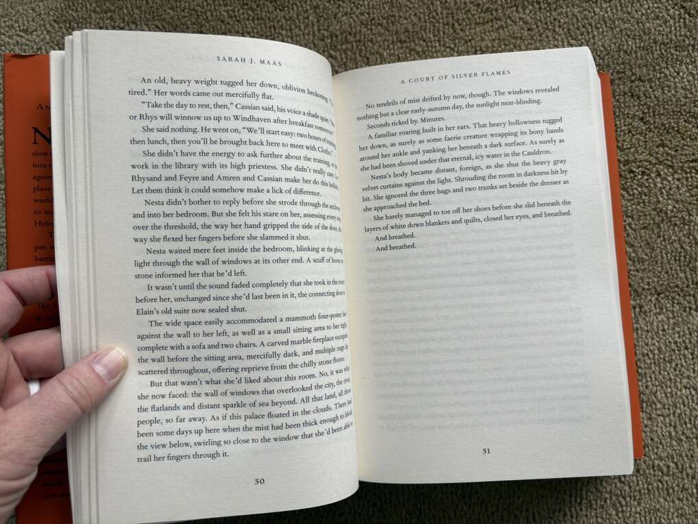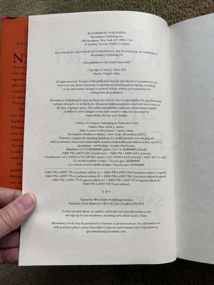 A Court of Silver Flames, by Sarah J. Maas. Book 5 in the New York Times bestselling series. Bloomsbury, new edition published 2021, 757 pages. Hardcover in excellent condition, including dust jacket. Text only. Cash or Venmo.