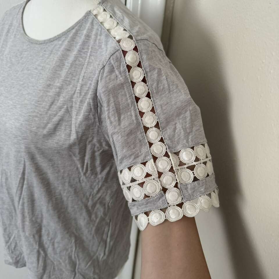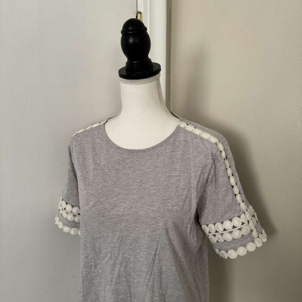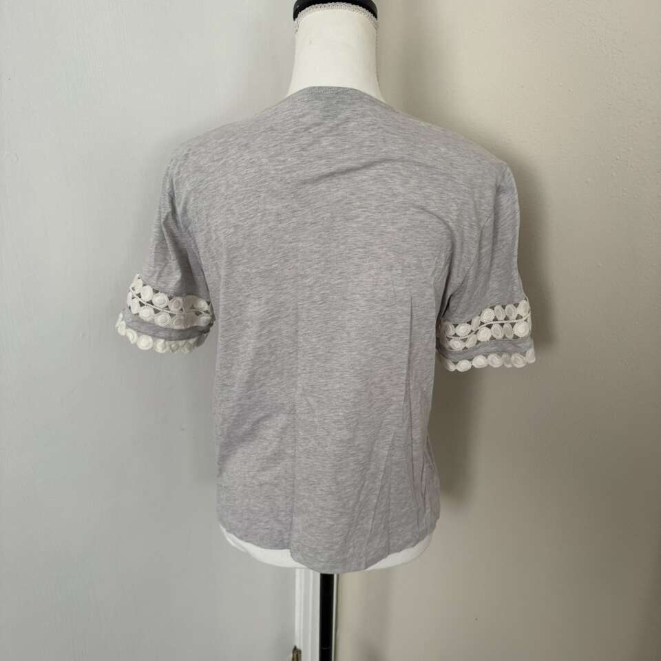 J. Crew SMALL Tee Shirt Crochet Trim Gray Casual Does have some light staining under the arm pits
