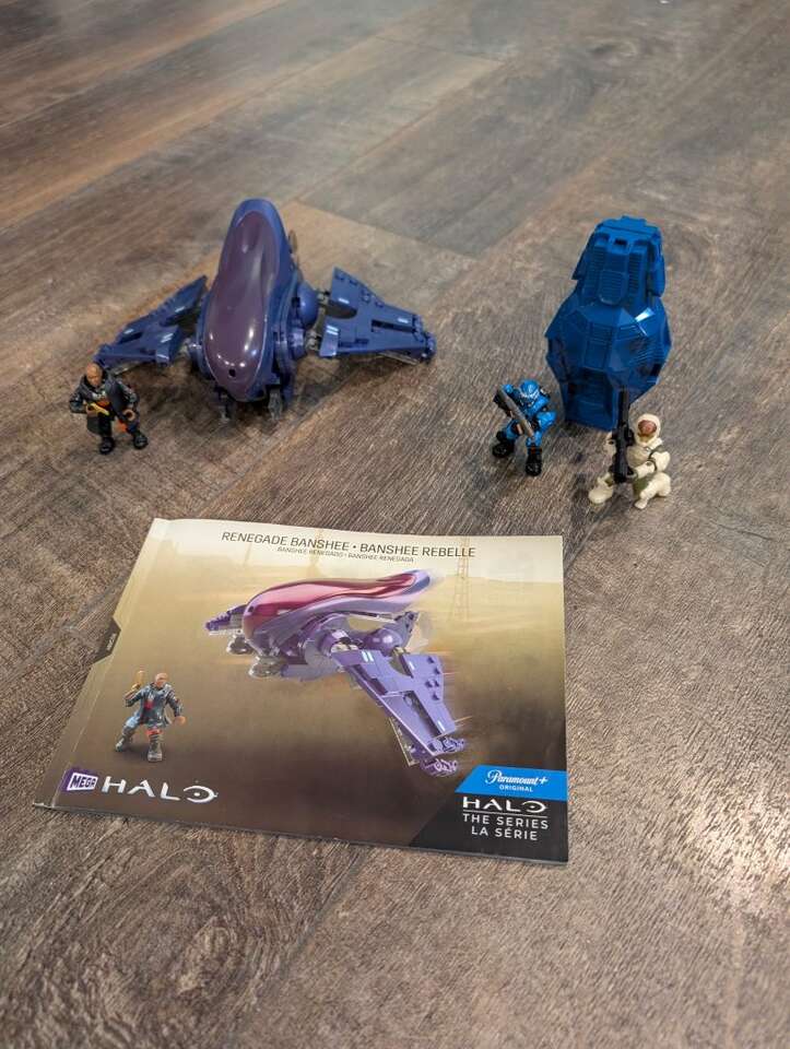 All in very good condition. Original boxes, all pieces and extra pieces. Used lightly. No loose parts. Instructions in perfect condition. You receive everything shown. Banshee does not come with original box, It is just a bonus, along with the ODST pod and three extra figures.