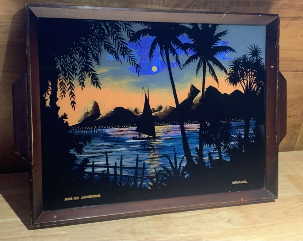 PayPalVintage Brazilian sailing ship Wood Serving Tray Rio De Janeiro mcm