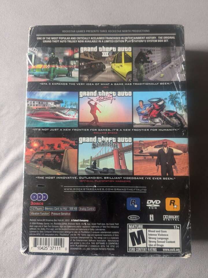 Original Brand New Factory Sealed GTA Trilogy For The PlayStation 2. I purchased this copy years ago at a Walmart for $20. Im asking $350 cash. Open to trades of greater value. Located in Orem UT.